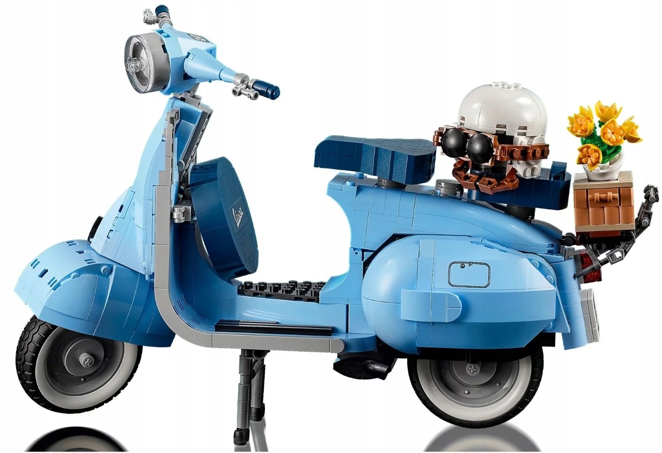 - Rzadko spotykany kolor — pastelowy błękit, jeden z oryginalnych kolorów fabrycznych Vespy, to kolor niezwykle rzadko spotykany w zestawach LEGO®, więc fani będą zachwyceni