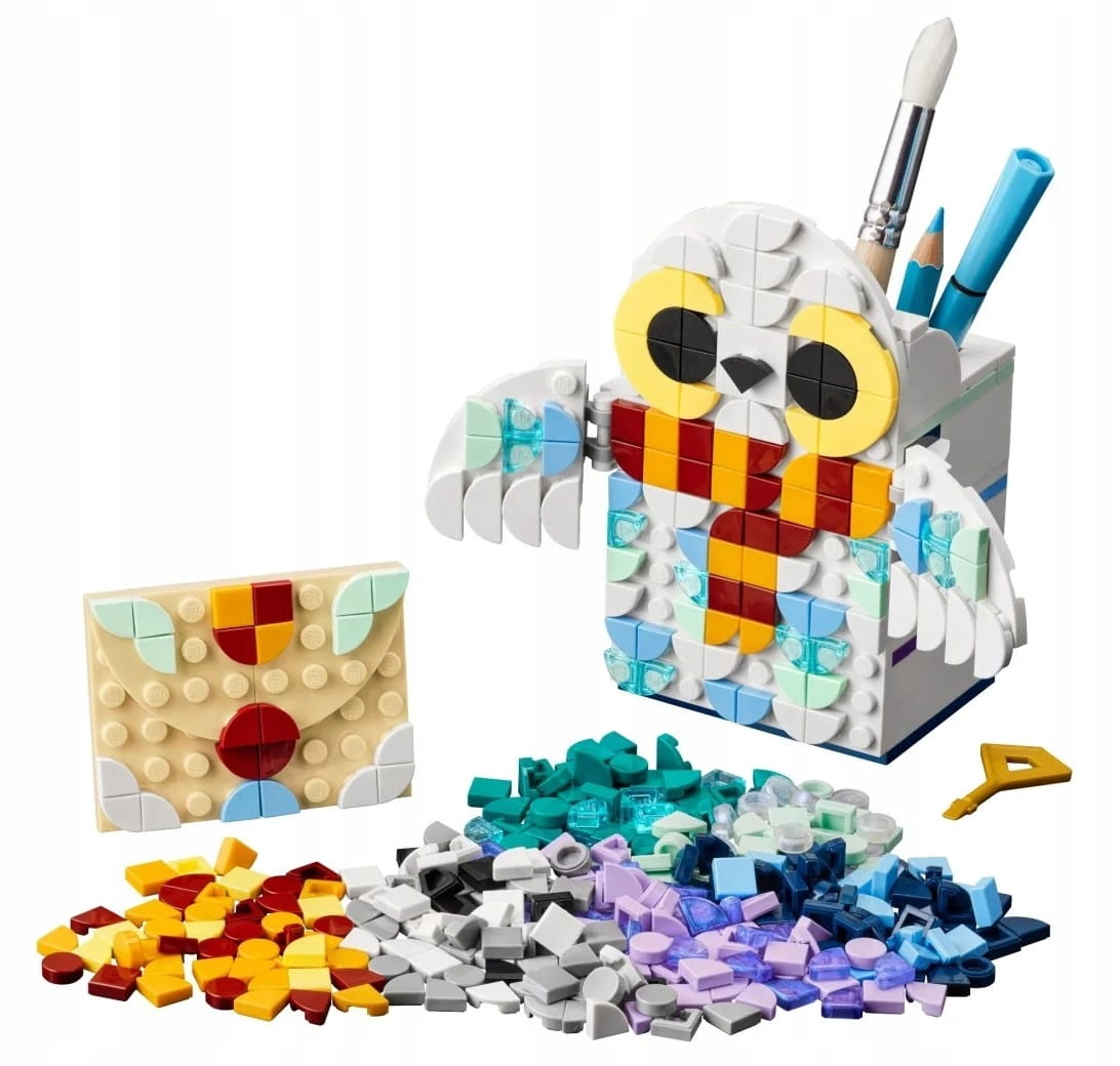 - Ulubiona towarzyszka Harry'ego Pottera™ – rozwiń umiejętności projektowania dzieci dzięki temu zestawowi, który zawiera pojemnik na długopisy w kształcie sowy z ruchomymi skrzydełkami, uchwyt na notatki w kształcie listu i wiele płytek