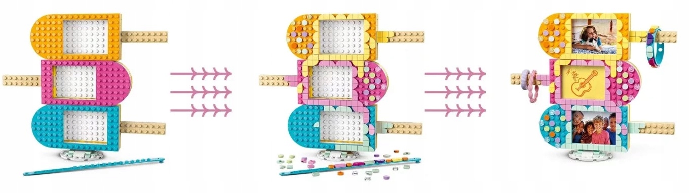 Zestawy DOTS przybliżają dzieciom radość z zabawy klockami LEGO oraz kreatywnego tworzenia i dekorowania. Do tych letnich ramek na zdjęcia i bransoletki pasuje wszystko, ponieważ wszystko zależy od magicznej wyobraźni dzieci.