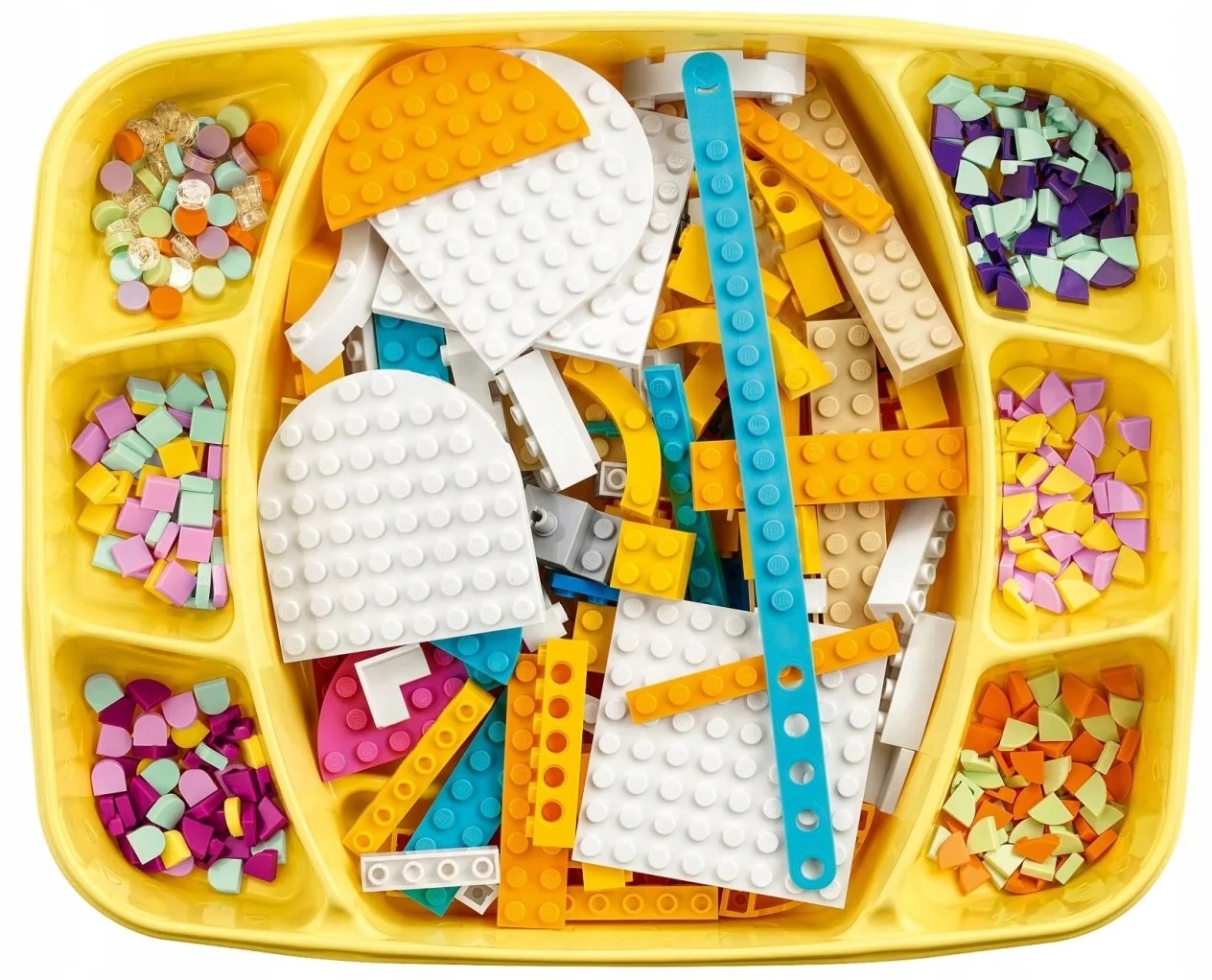 - Pudełko pełne kreatywności — ten zestaw to coś w sam raz dla kreatywnych dzieci. Można go również połączyć z elementami z torebek i pudełek LEGO® DOTS Dodatki DOTS (sprzedawanych oddzielnie), aby tworzyć jeszcze lepsze dzieła