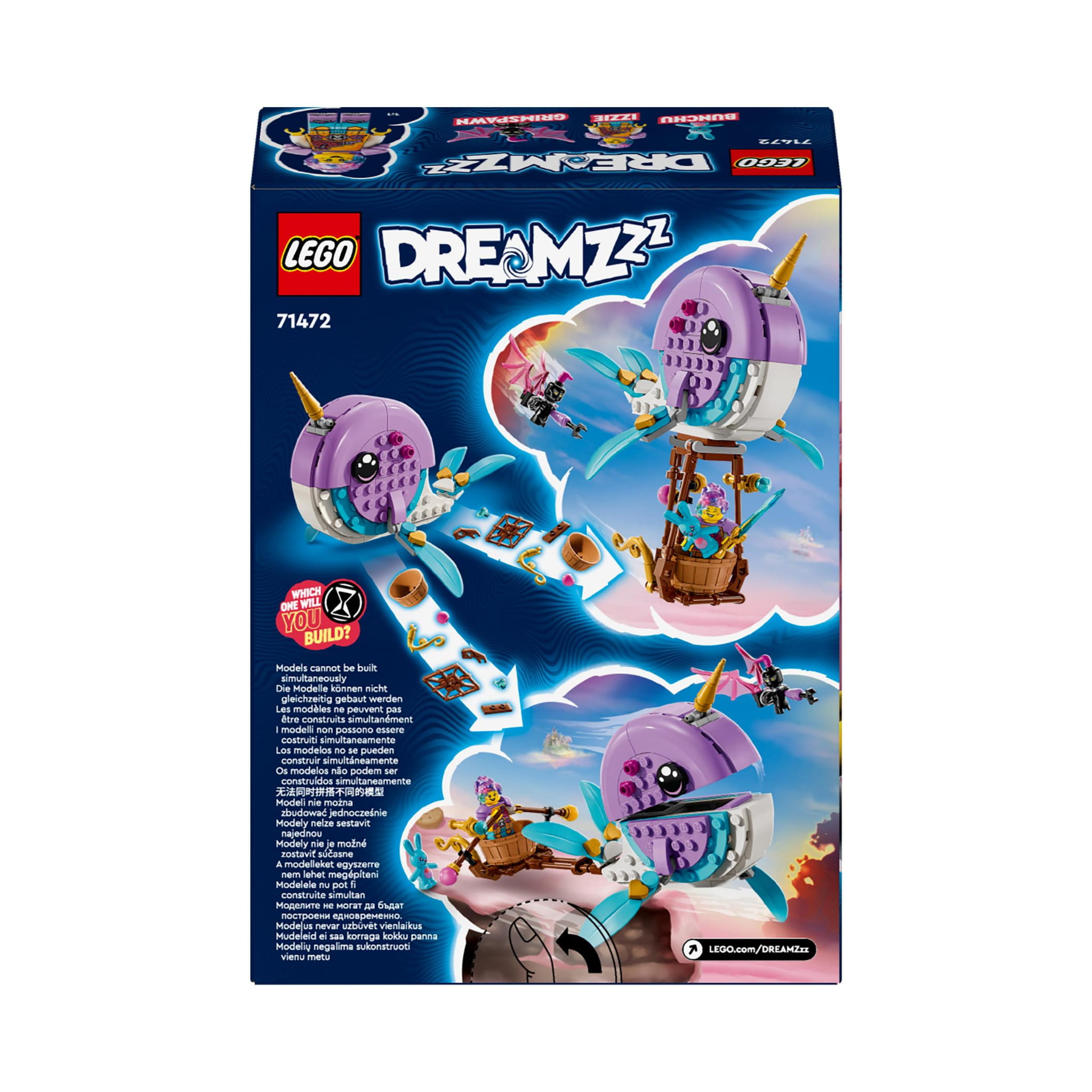 Następnie dzieci mogą przekształcić model wieloryba w balon na ogrzane powietrze lub szybki rydwan.Zestaw zawiera postacie LEGO DREAMZzz, w tym Izzie i koszmarnika.