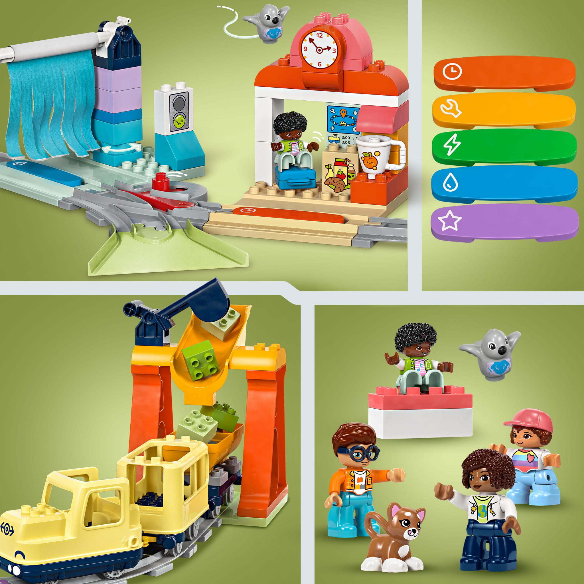 - Jeszcze więcej zabawy — połącz ten zestaw z innymi interaktywnymi zestawami kolejowymi LEGO® DUPLO® Town i skorzystaj z bezpłatnej aplikacji oferującej pomysły na zabawę