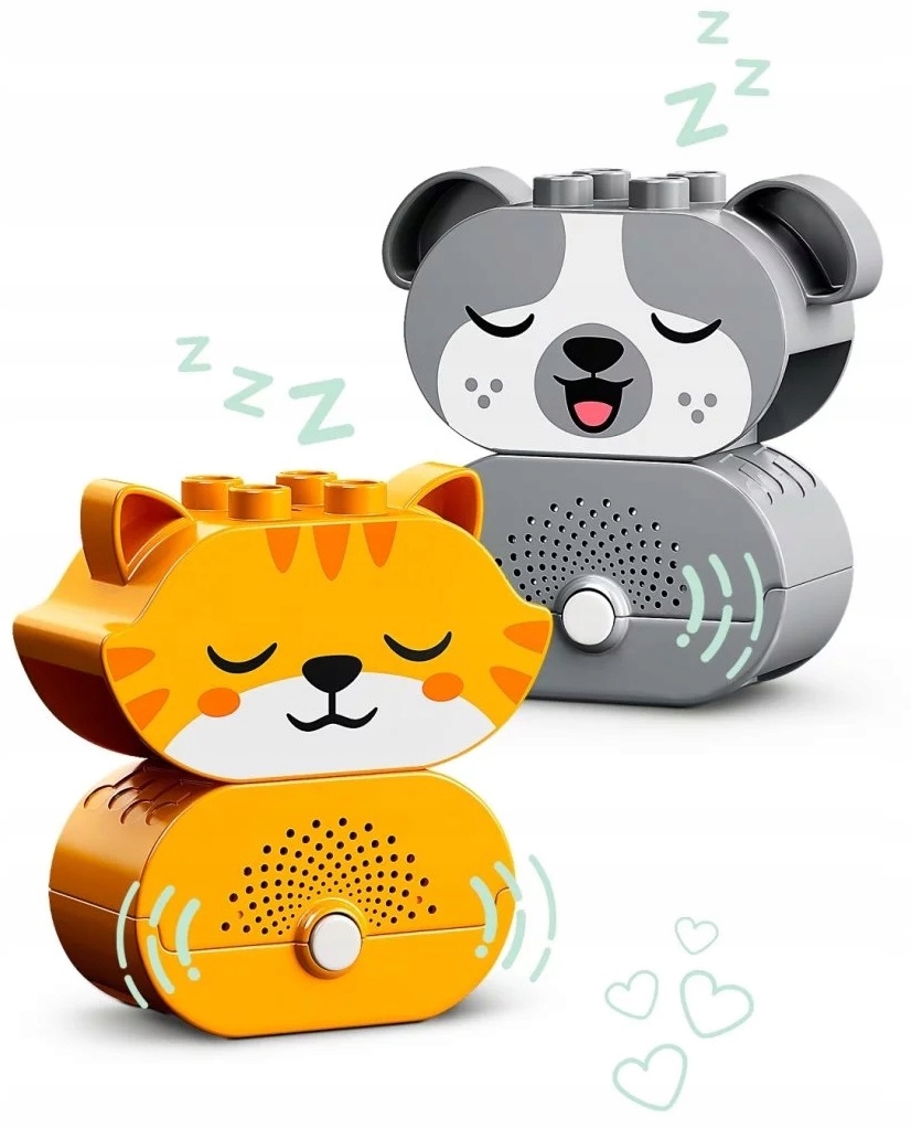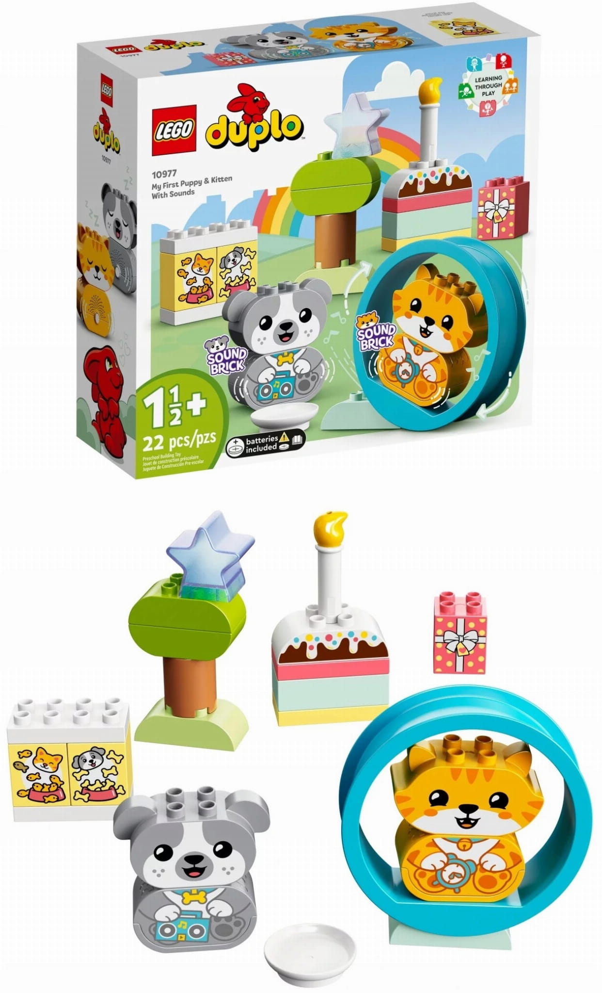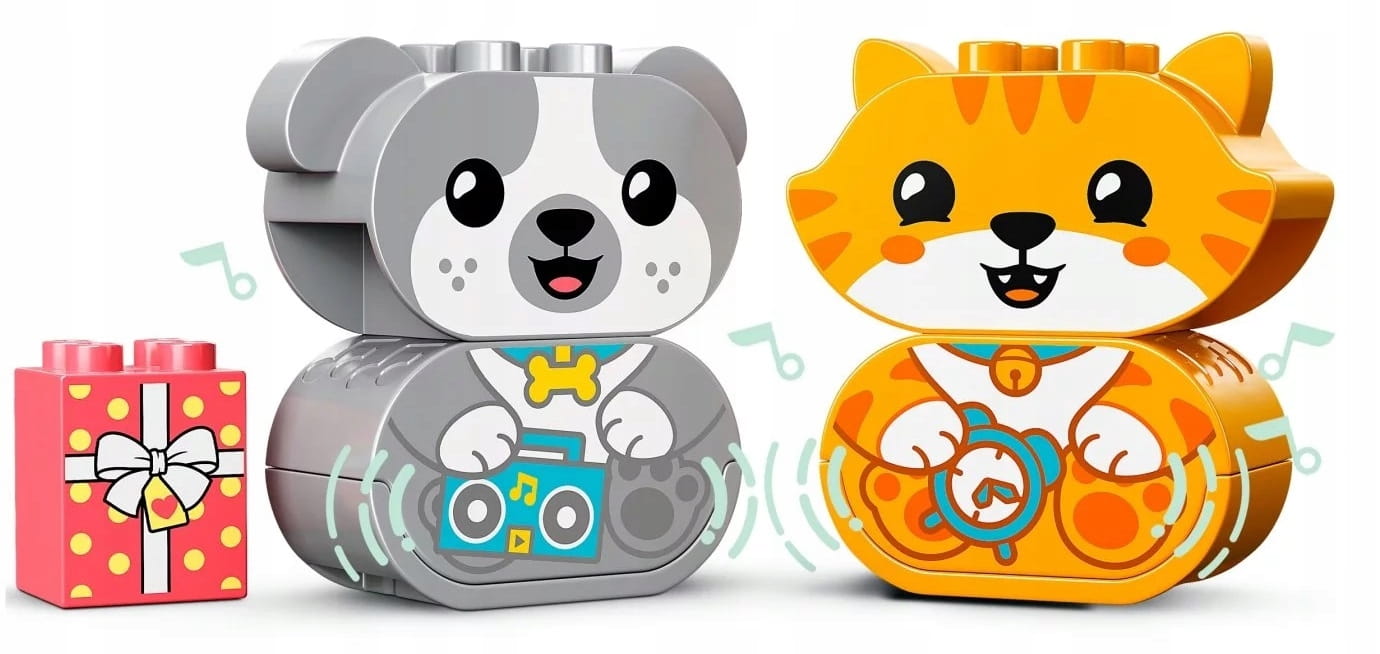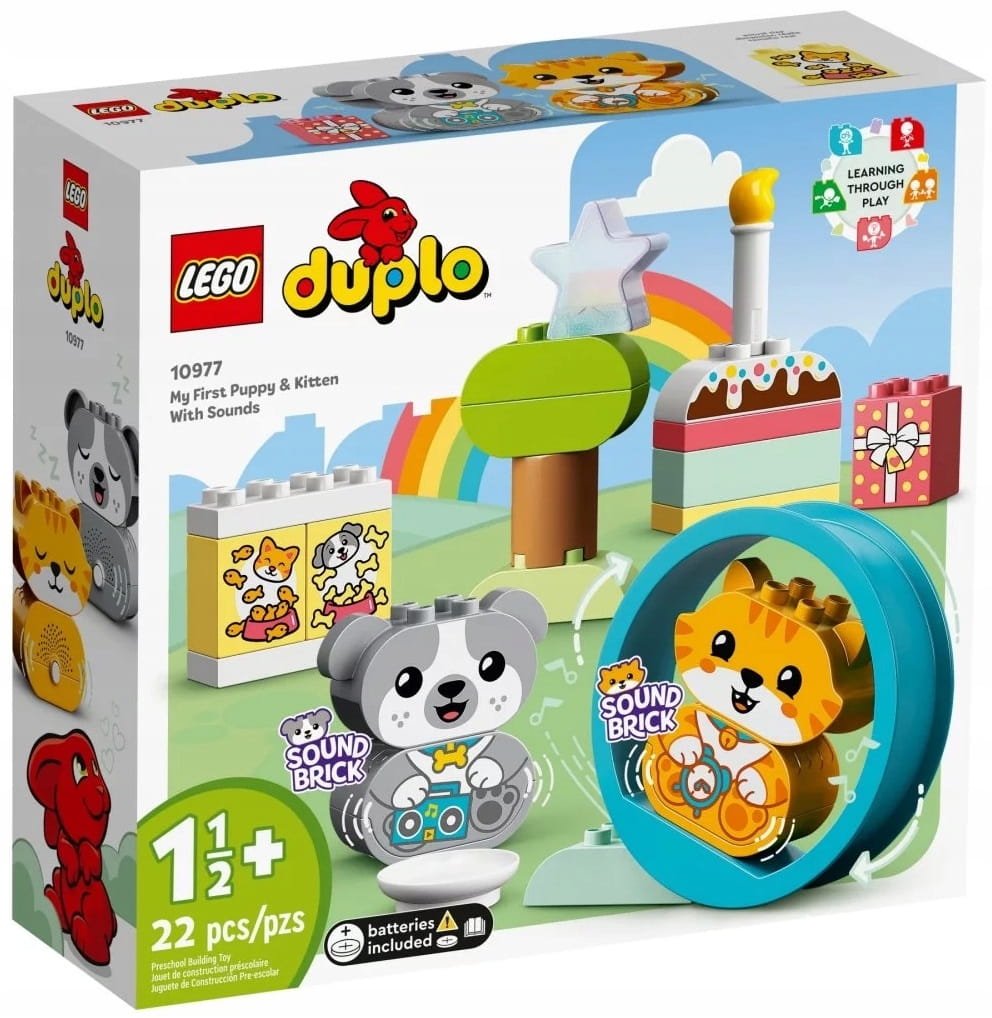 Zestaw LEGO® DUPLO® Mój pierwszy szczeniak i kotek z odgłosami (10977) pozwala dzieciom w wieku od 18 miesięcy uczyć się podczas zabawy i rozwijać umiejętności.