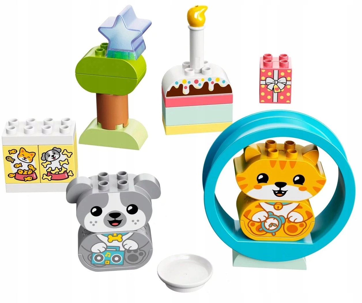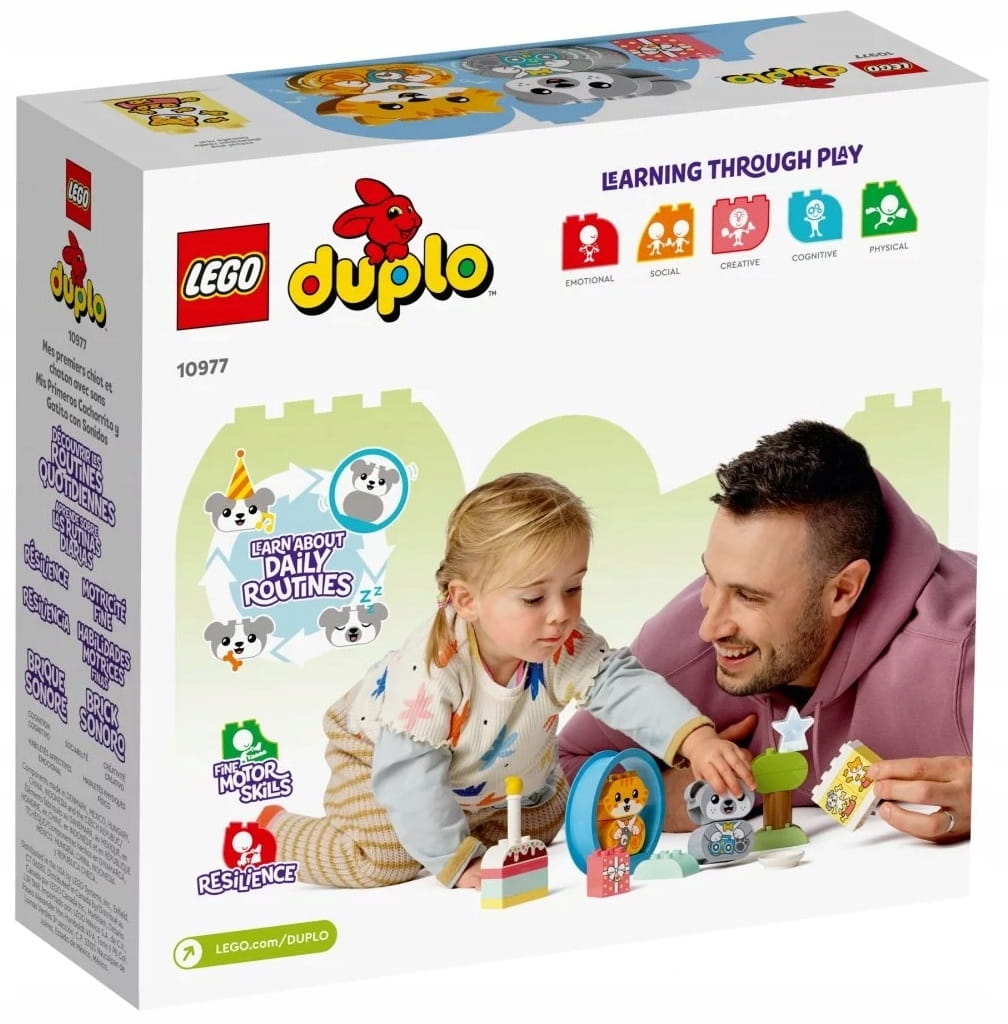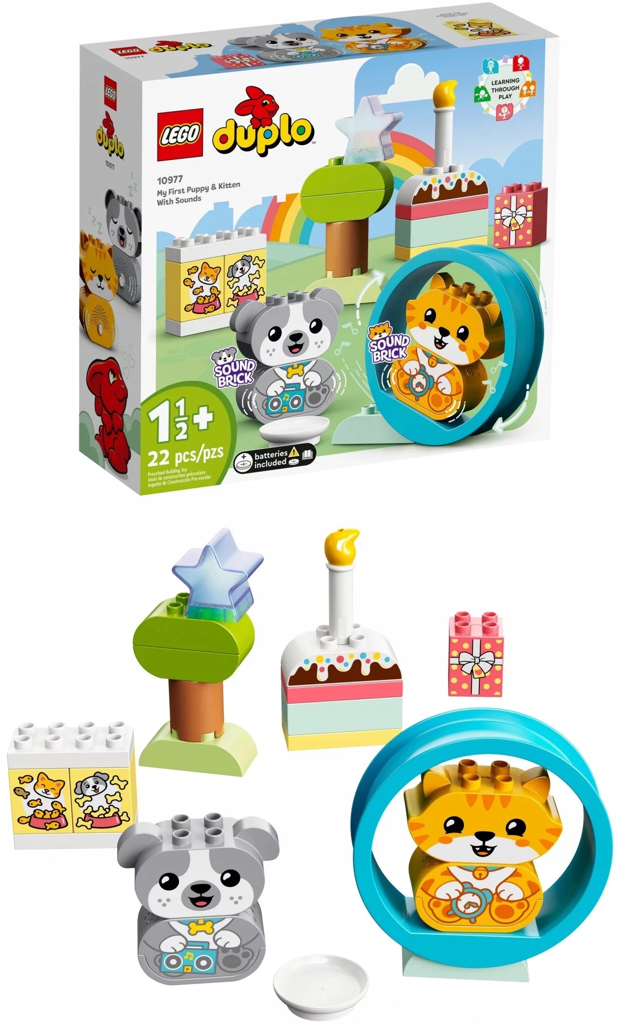 - Zwierzęta dla przedszkolaków — zestaw LEGO® DUPLO® Mój pierwszy szczeniak i kotek z odgłosami (10977) daje małym miłośnikom zwierząt wiele okazji do nauki przez zabawę