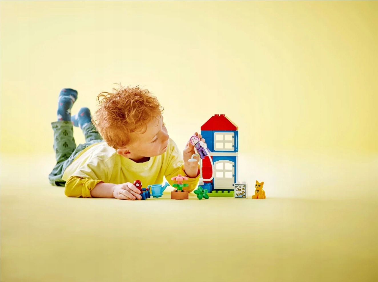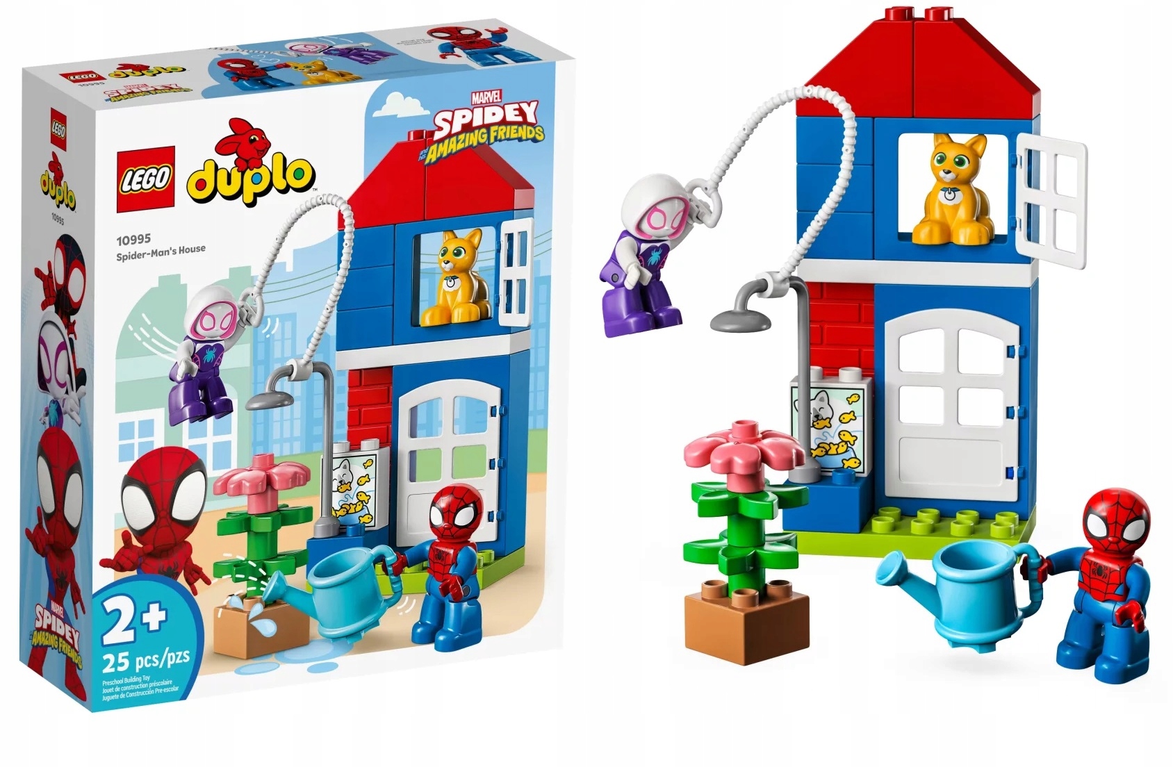 - Zabawa pobudzająca wyobraźnię – w zestawie jest figurka Spider-Mana, Ghost-Spidera i kota Bootsie, rosnąca roślina, konewka, sieć i budynek z otwieranymi drzwiami i oknami