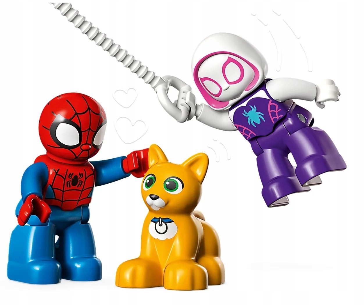 Mnóstwo atrakcji dla małych fanów Spider-Mana Zestaw obejmuje trzy figurki – Spider-Mana, Ghost-Spidera i kotka Bootsie.
