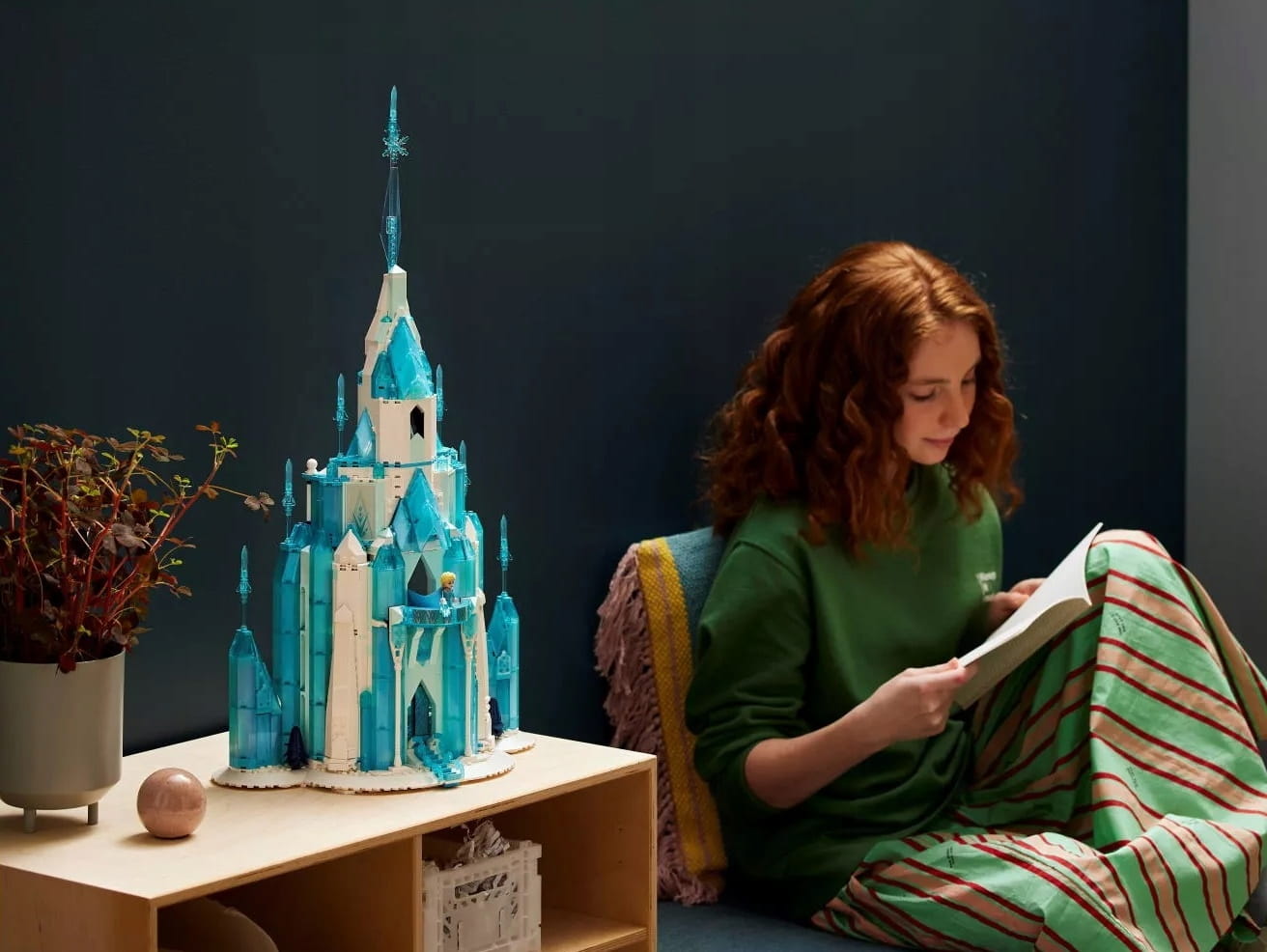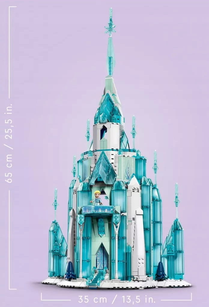 Fani filmów od razu rozpoznają zamek z biegnącymi po obu stronach schodami prowadzącymi do sali tronowej, błyszczącą lodową fontanną, balkonem i innymi elementami. Konstruktorzy mogą spędzić wiele godzin, odkrywając wszystkie funkcje zestawu podczas składania zamku i zabawy nim. Model będzie się też świetnie prezentować na półce.