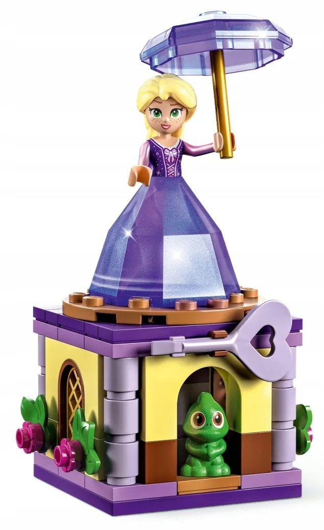 Zawiera on stojak do zbudowania z ozdobami, kluczem i miejscem na figurkę LEGO kameleona Pascala, minilaleczkę LEGO Roszpunkę i „diamentową” sukienkę, którą można połączyć z parasolem, aby przechowywać minilaleczkę .