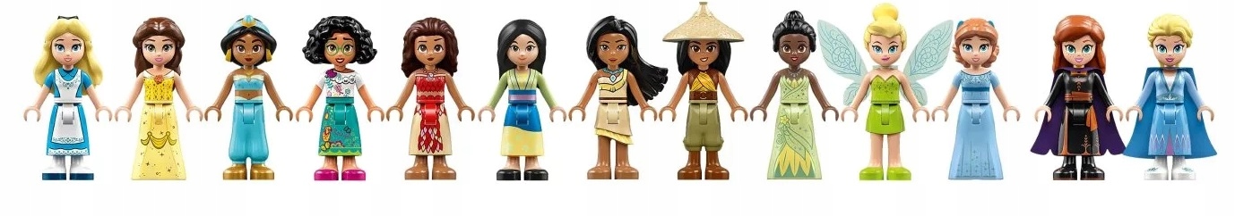Ten zestaw premium jest pełen postaci Disneya, takich jak Mulan, Raya, Elza, Vaiana, Dzwoneczek, Alicja, Wendy, Bella, Tiana, Anna, Pocahontas, księżniczka Dżasmina i Mirabel.