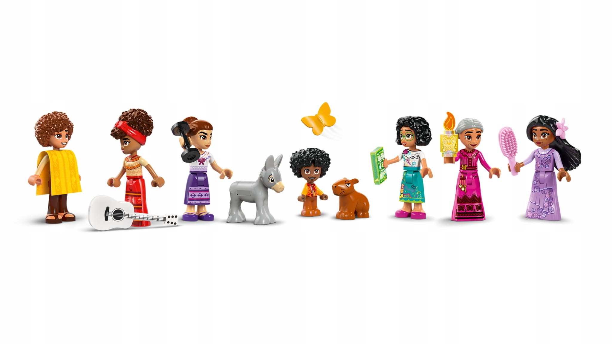 - Postacie z filmu Nasze magiczne Encanto Disneya — sześć minilaleczek LEGO® Disney: Abuela, Mirabel, Isabela, Dolores, Luisa i Camilo, mikrolaleczka LEGO ǀ Disney Antonia i dwie figurki zwierząt LEGO ǀ Disney