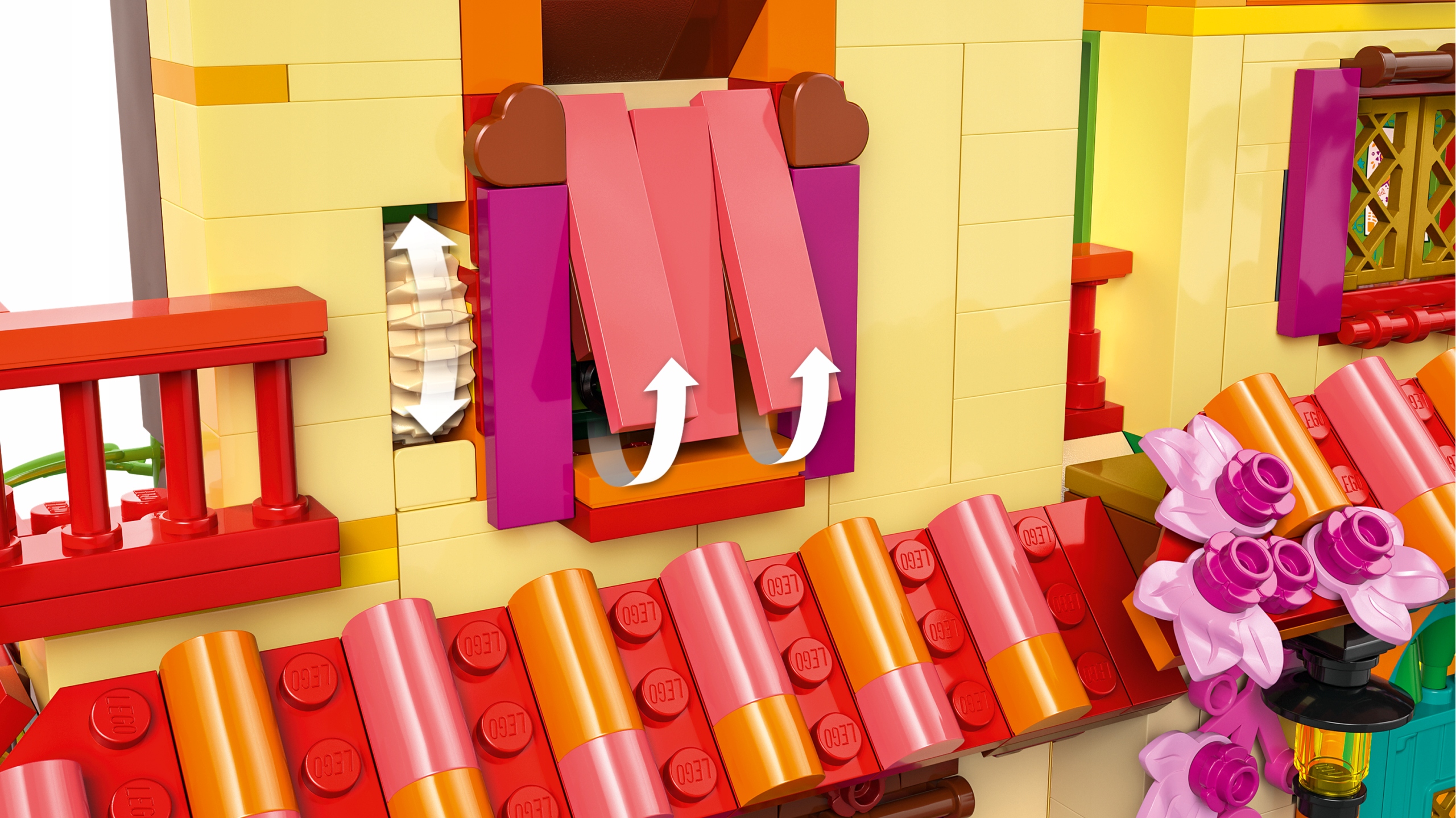Zawiera minilaleczki LEGO Disney Mirabel, Abueli, Isabeli, Dolores, Luisy i Camilo, mikrolaleczkę LEGO Disney Antonia i dwie figurki zwierząt LEGO ǀ Disney.