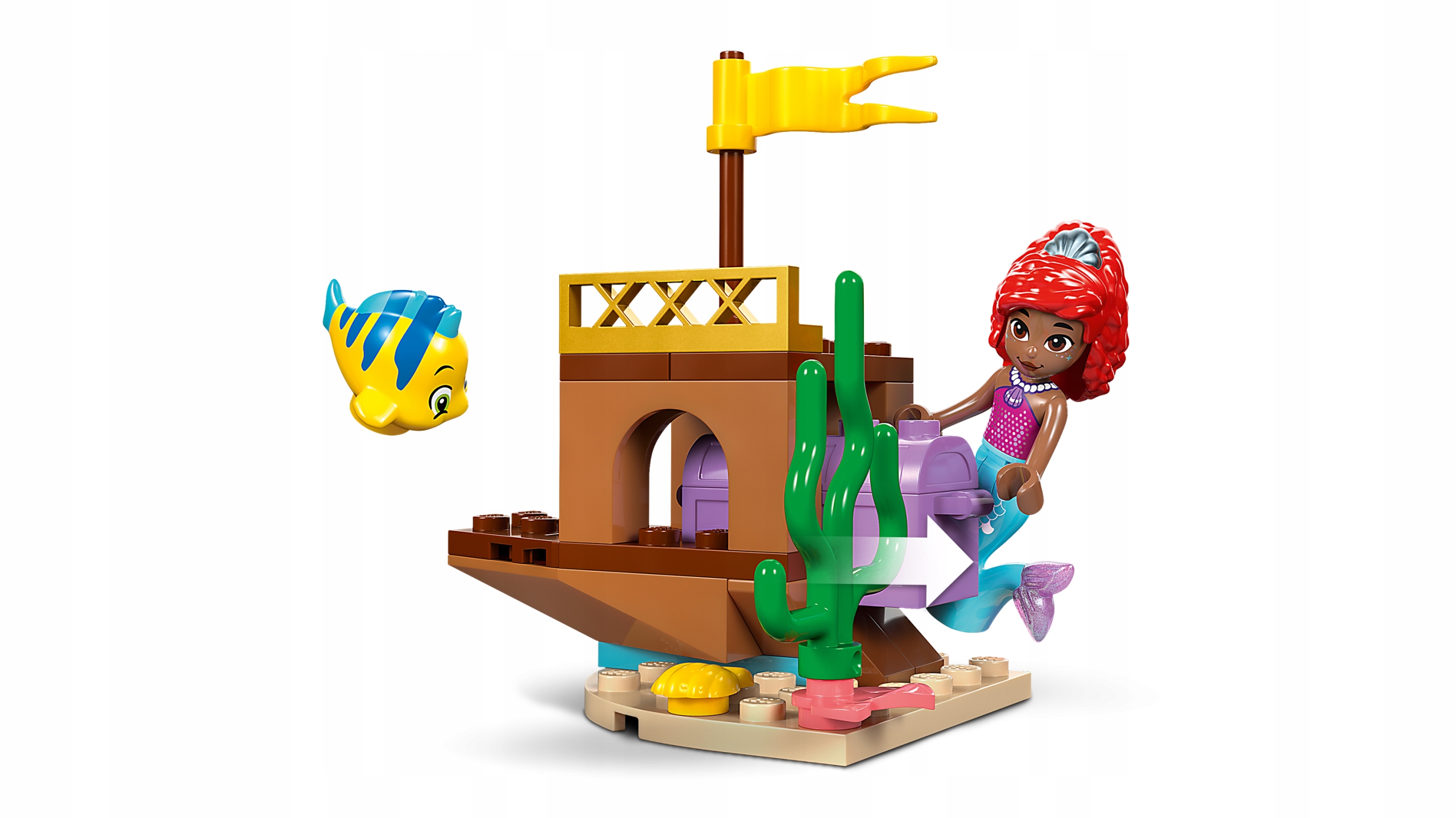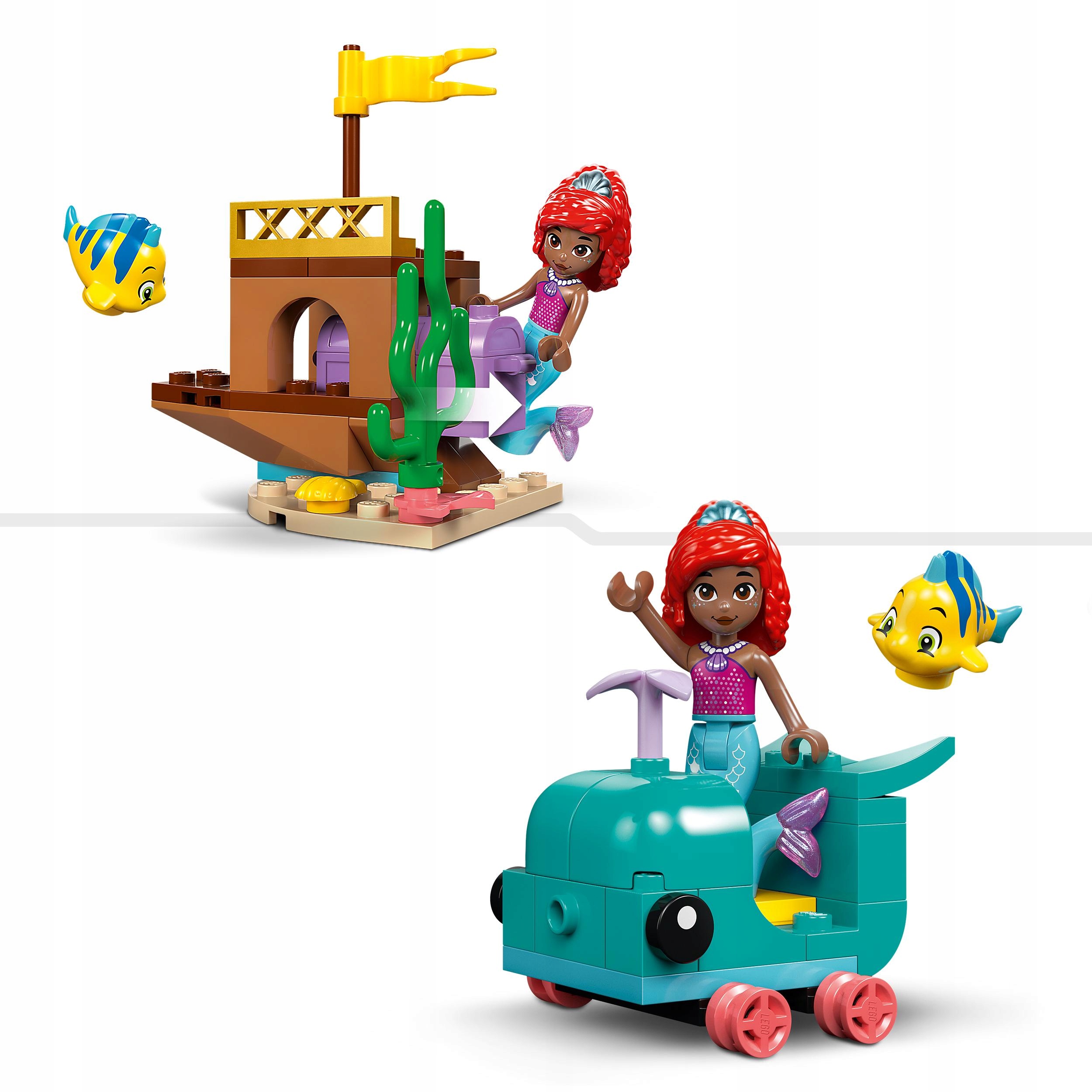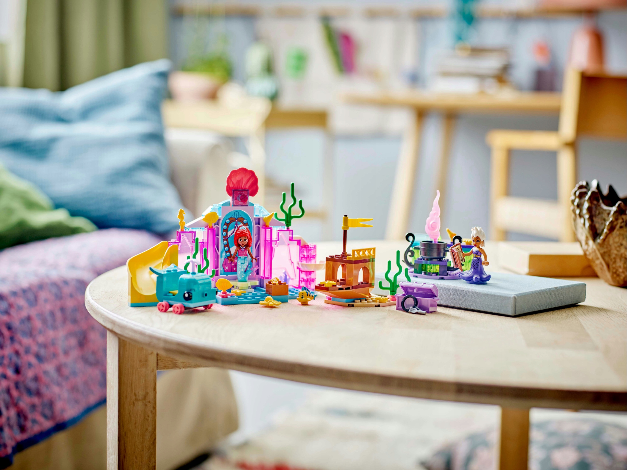 - Gotowy do kreatywnej zabawy — ten zestaw zawiera kryształową grotę inspirowaną serialem Ariel produkcji Disney Junior, minilaleczki LEGO® ǀ Disney Urszuli i Arielki oraz figurkę LEGO Disney rybki Florka