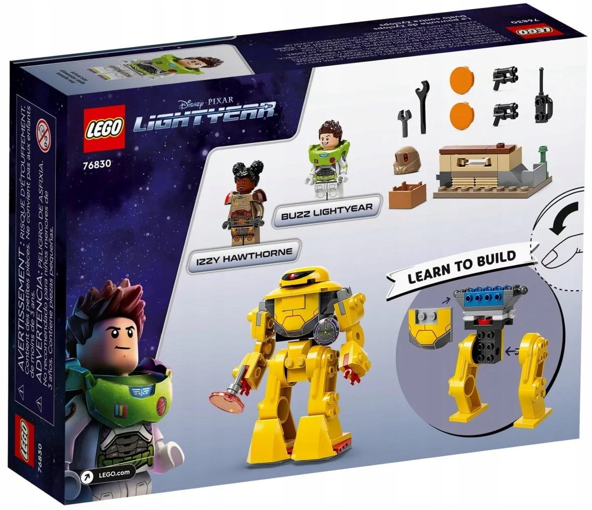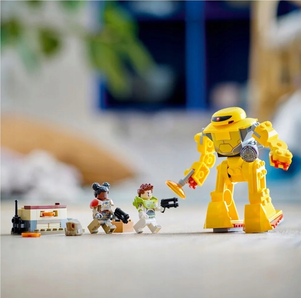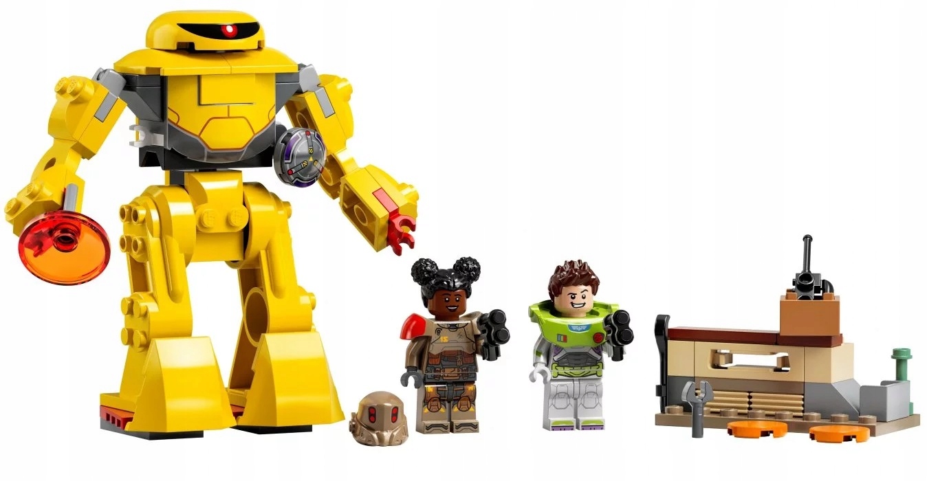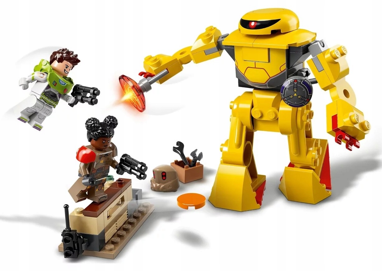 - Zabawka akcji do zbudowania dla fanów Buzza Astrala — w pudełku są minifigurki LEGO® Buzza Astrala i Izzy w kosmicznych hełmach i pancerzach, a także ruchomy mech do zbudowania i trzy rodzaje broni