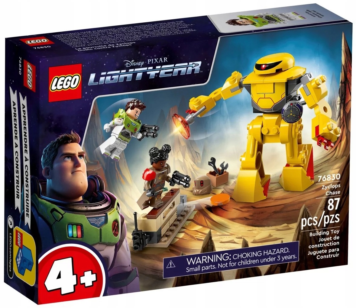 - Przeżyj na nowo sceny z ostatecznej historii o narodzinach Buzza Astrala — zestaw Pościg za Zyklopem (76830) inspirowany filmem wytwórni Disney and Pixar zachwyci wszystkie dzieci od czwartego roku życia