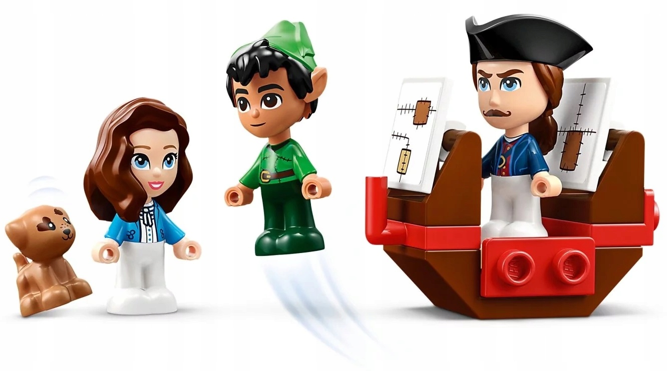 Dzięki trzem mikrolaleczkom LEGO — Piotrusia Pana, Wendy i Kapitana Haka — oraz figurce LEGO psa Nany ten kreatywny zestaw zachęca dzieci do szybkiego rozpoczęcia zabawy.