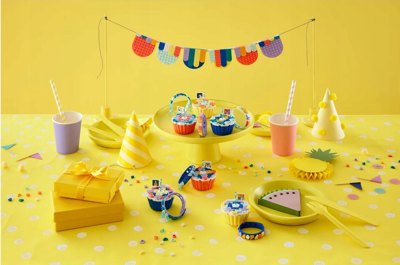 - Kreatywne dekorowanie – zaskocz każdego fana rękodzieła w wieku od sześciu lat tym zabawnym zestawem LEGO® DOTS Pełny zestaw imprezowy (41806), który zawiera sześć babeczek, sześć bransoletek, sześć chorągiewek i wiele innych dodatków
