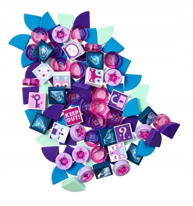 W woreczku czeka 107 kolorowych płytek, w tym płytki w kształcie gwiazdki i diamentu z efektem 3D oraz dziesięć specjalnych, tajnych płytek z dekoracjami wybranymi losowo z puli 16 wzorów. Teraz dzieci mogą dowolnie ozdabiać bransoletki i domowe dekoracje, a przy tym rozwijać twórcze umiejętności.