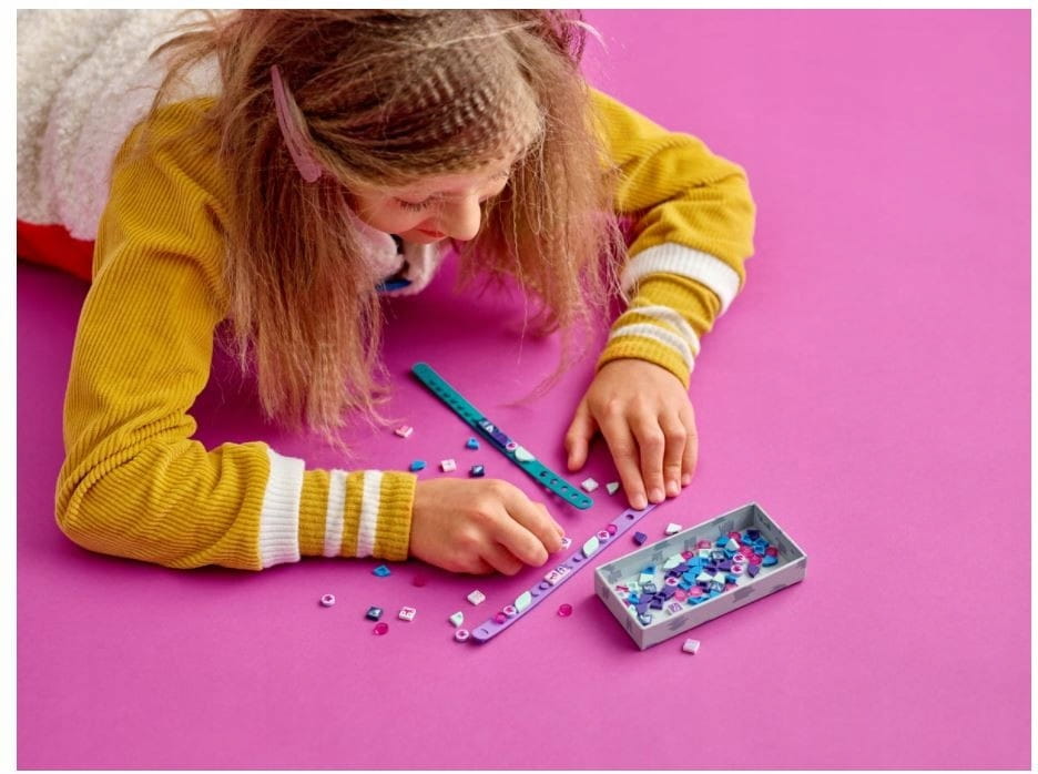 - Uniwersalne płytki nadają się do dekorowania bransoletek i domowych ozdób. Dzieci mogą łączyć je zestawami DOTS i innymi zabawkami LEGO®, aby dowolnie je przerabiać.