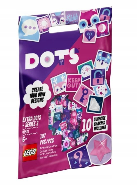 - Zestaw LEGO® DOTS Dodatki DOTS — Seria 3 (41921) zachęca do wyrażania siebie i sprawi, że mali miłośnicy samodzielnie wykonanej biżuterii będą w siódmym niebie. Zawartość woreczka to część niespodzianki!