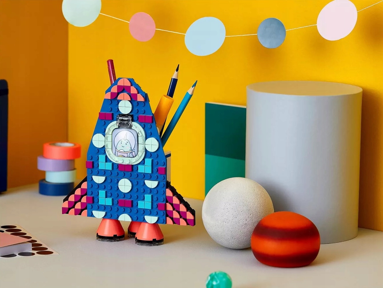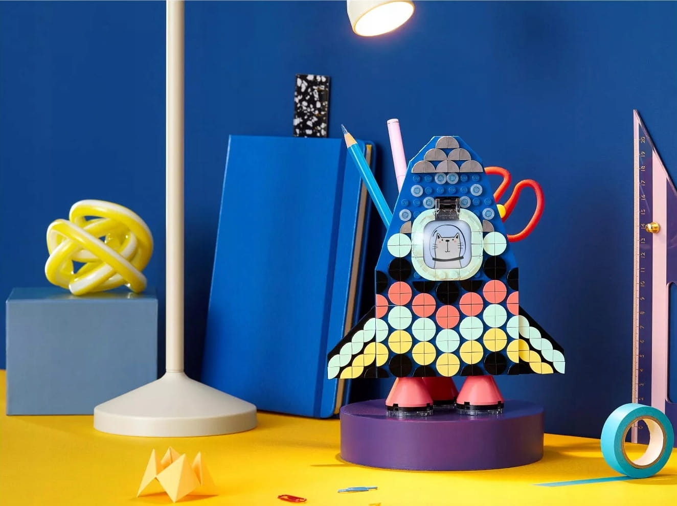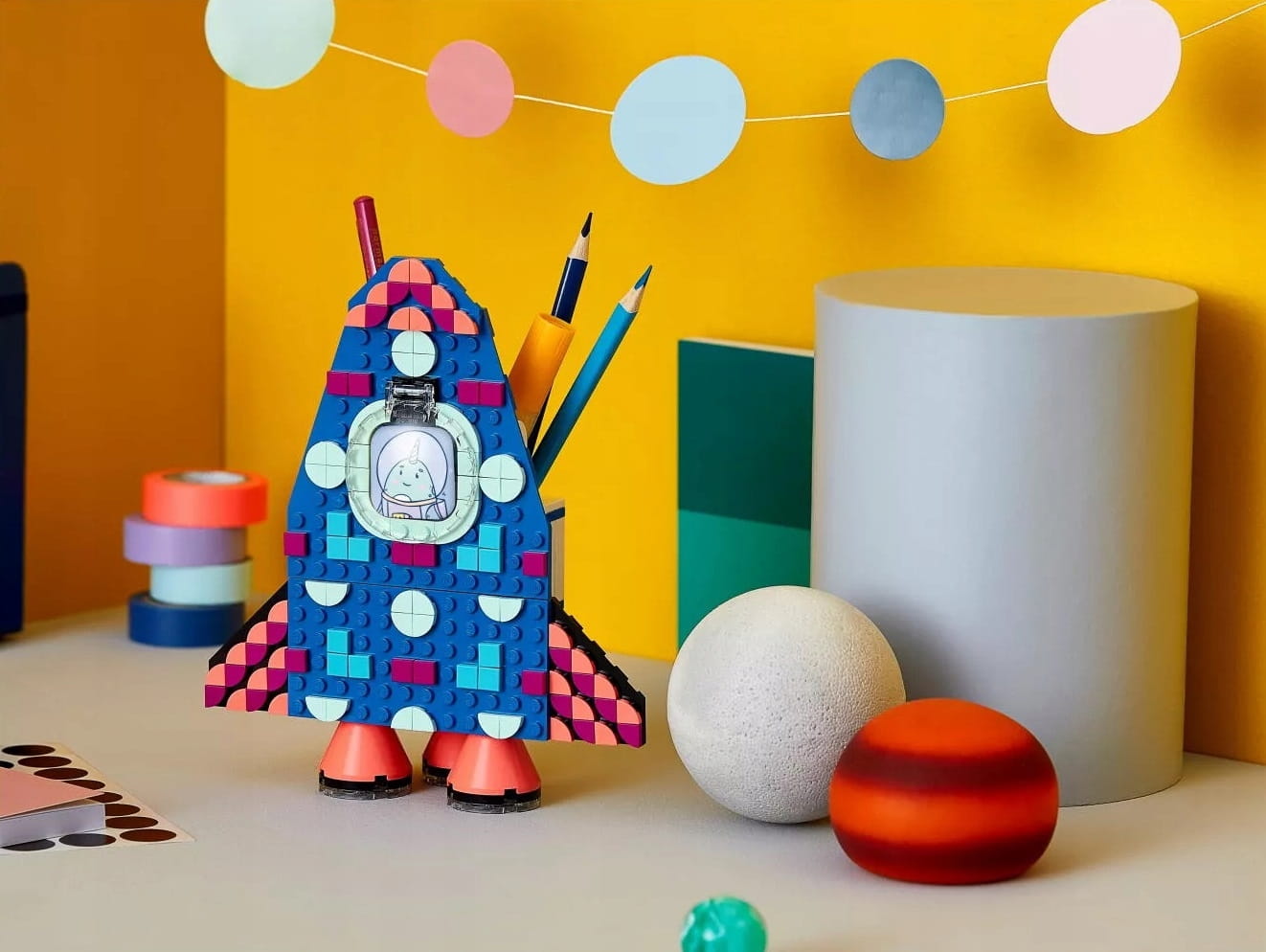 - Zestaw LEGO® DOTS Pojemnik na długopisy (41936) zachęca dzieci do kreatywnej zabawy i rozwija wyobraźnię. Ozdabianie rakiety we własny sposób pomaga rozwijać umiejętności tworzenia projektów.
