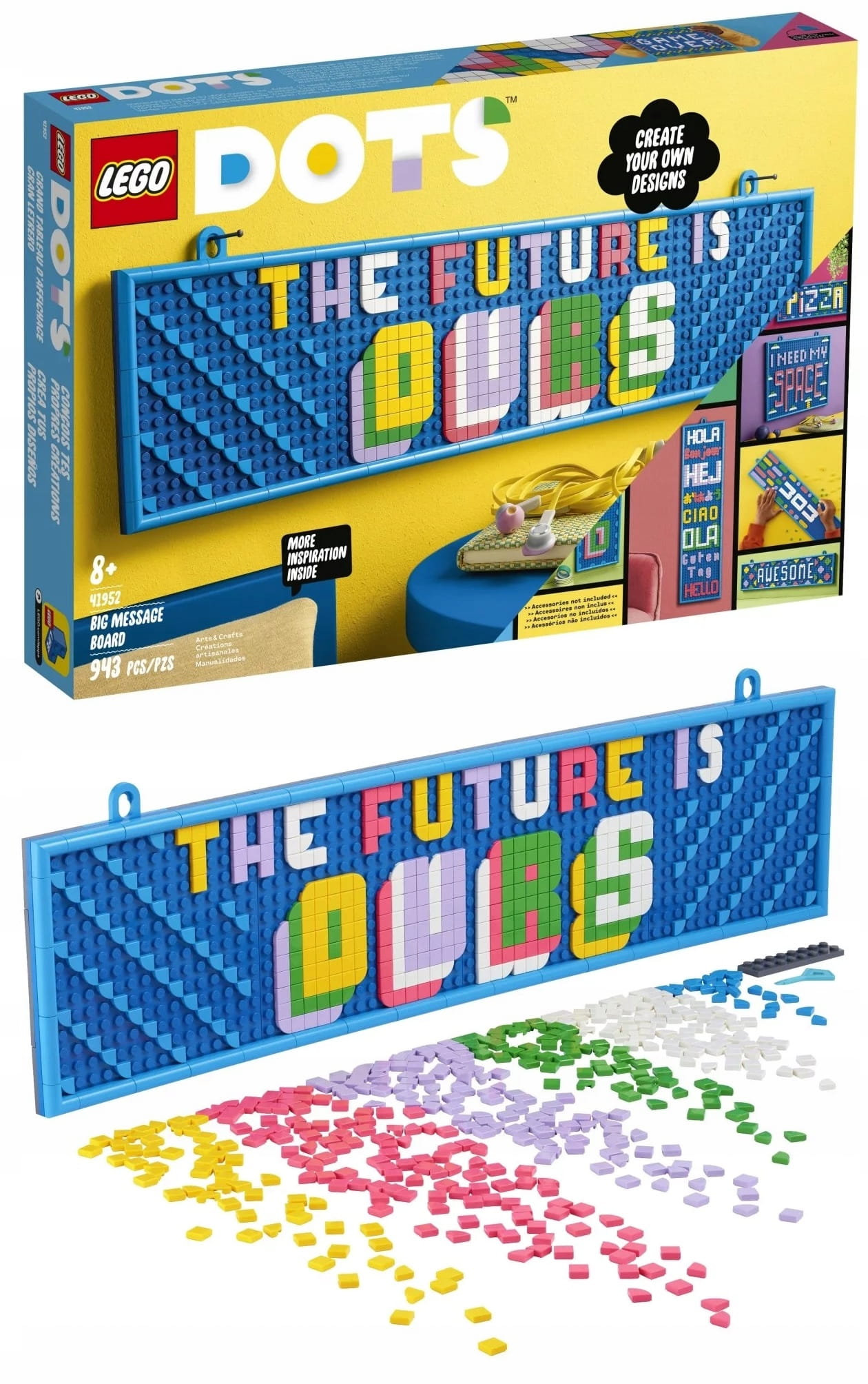 - Pokaż swoją osobowość — z zestawem LEGO® DOTS Duża tablica ogłoszeń (41952) miłośnicy rękodzieła mogą rozwijać swoje pasje. Kreatywna zabawa zaczyna się od razu po otworzeniu opakowania