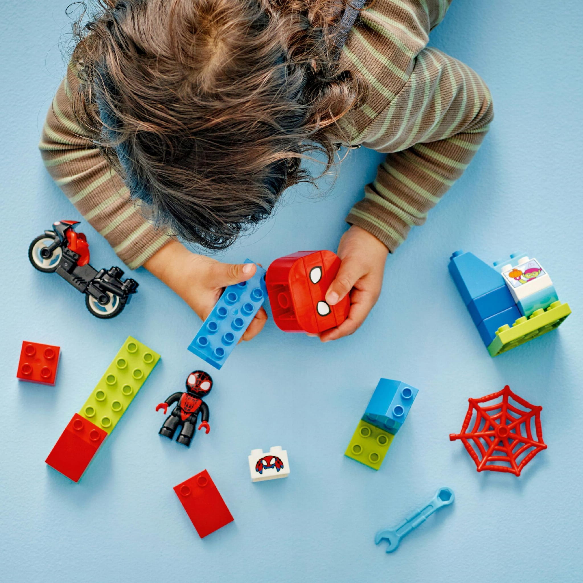 - Pajęcza zabawa dla małych superbohaterów — dzięki zestawowi LEGO® DUPLO® Marvel Motocyklowa przygoda Spina przedszkolaki w wieku od dwóch lat będą z chęcią odgrywać scenki z serialu Disney+ Spidey i super-kumple