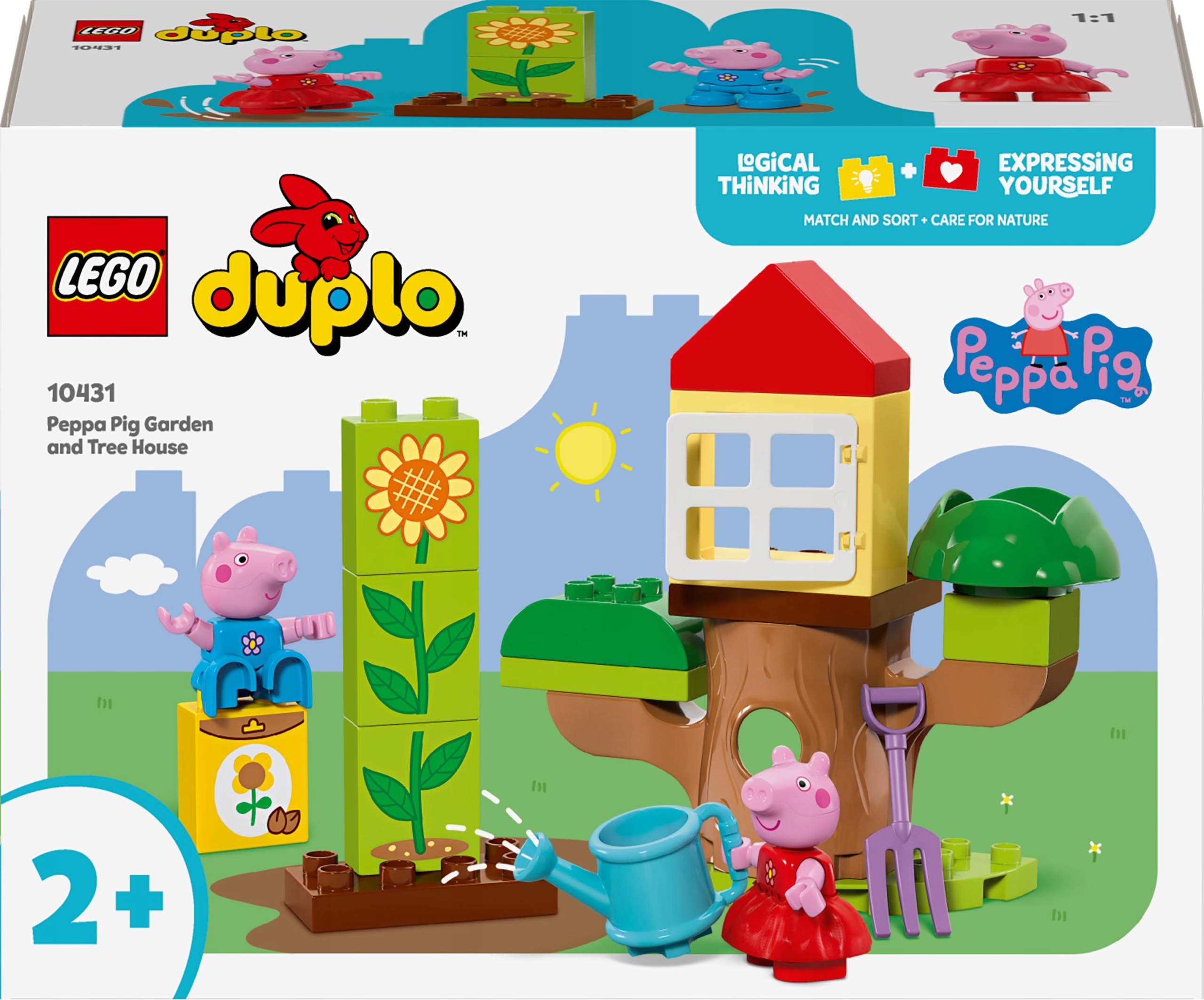 Zachęć dzieci w wieku od dwóch lat do odkrywania świata poza domem dzięki zestawowi LEGO® DUPLO® Ogród i domek na drzewie Peppy (10431).