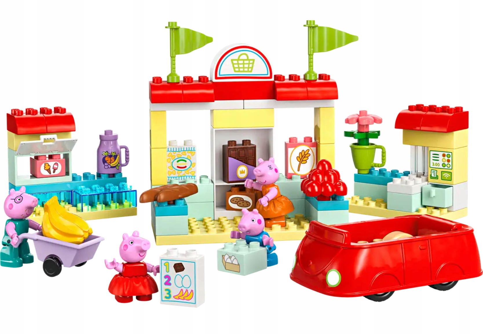 Ta edukacyjna zabawka LEGO DUPLO z Peppą pomaga rozwijać umiejętności logicznego myślenia podczas odgrywania scenek na zakupach znanych z serialu animowanego.