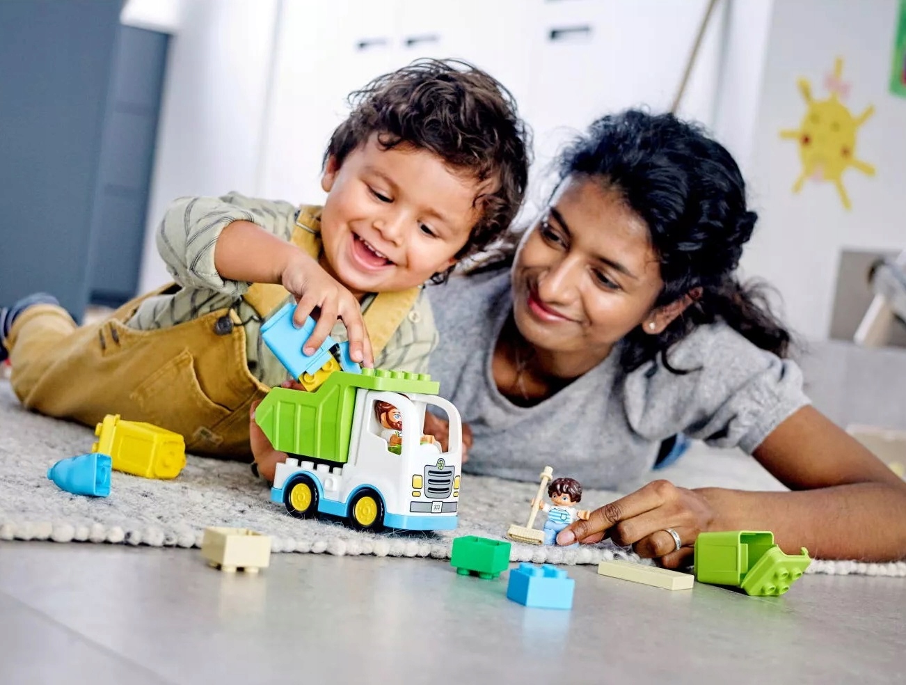 - LEGO® DUPLO® Town 10945 Śmieciarka i recykling to kolorowy i wszechstronny zestaw do zbudowania, który zawiera wiele funkcji zachęcających do nauki i zabawy.