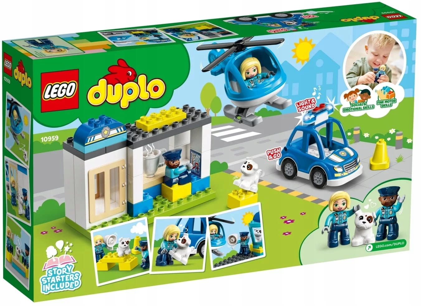LEGO® DUPLO® Rescue Posterunek policji i helikopter (10959) to policyjny zestaw dla dwulatków i starszych dzieci, w którym znajdziesz postacie i pojazdy inspirujące najmłodszych do zabawy.