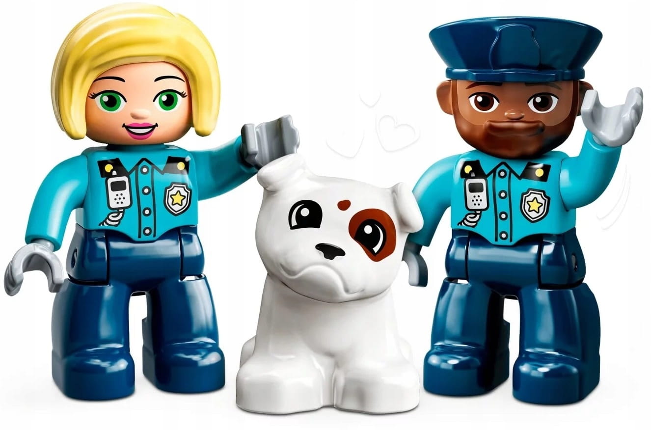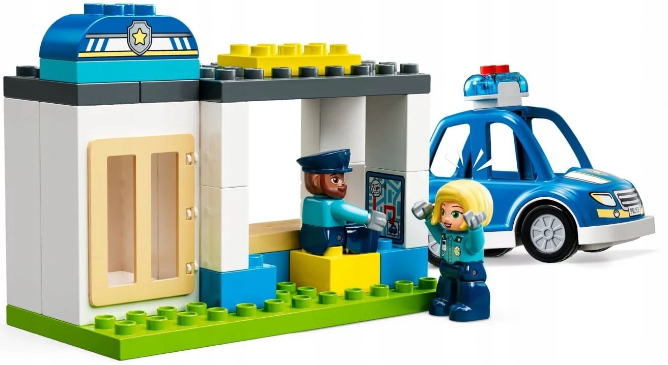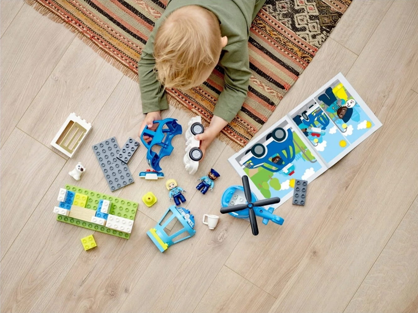 - Policyjna zabawka dla najmłodszych — w zestawie LEGO® DUPLO® Posterunek policji i helikopter (10959) znajdziesz postacie i pojazdy inspirujące najmłodszych policjantów do pomysłowej zabawy