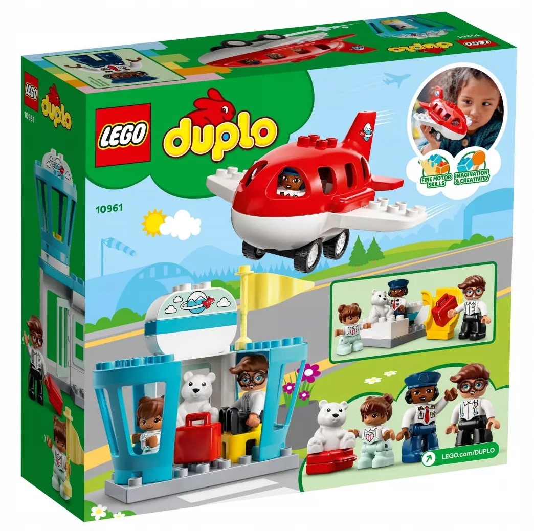 - Wyrusz ze swoim maluchem w podniebną podróż w zestawie LEGO® DUPLO® Town Samolot i lotnisko (10961), który pozwoli Wam każdego dnia odkrywać w wyobraźni inne, nowe miejsce.