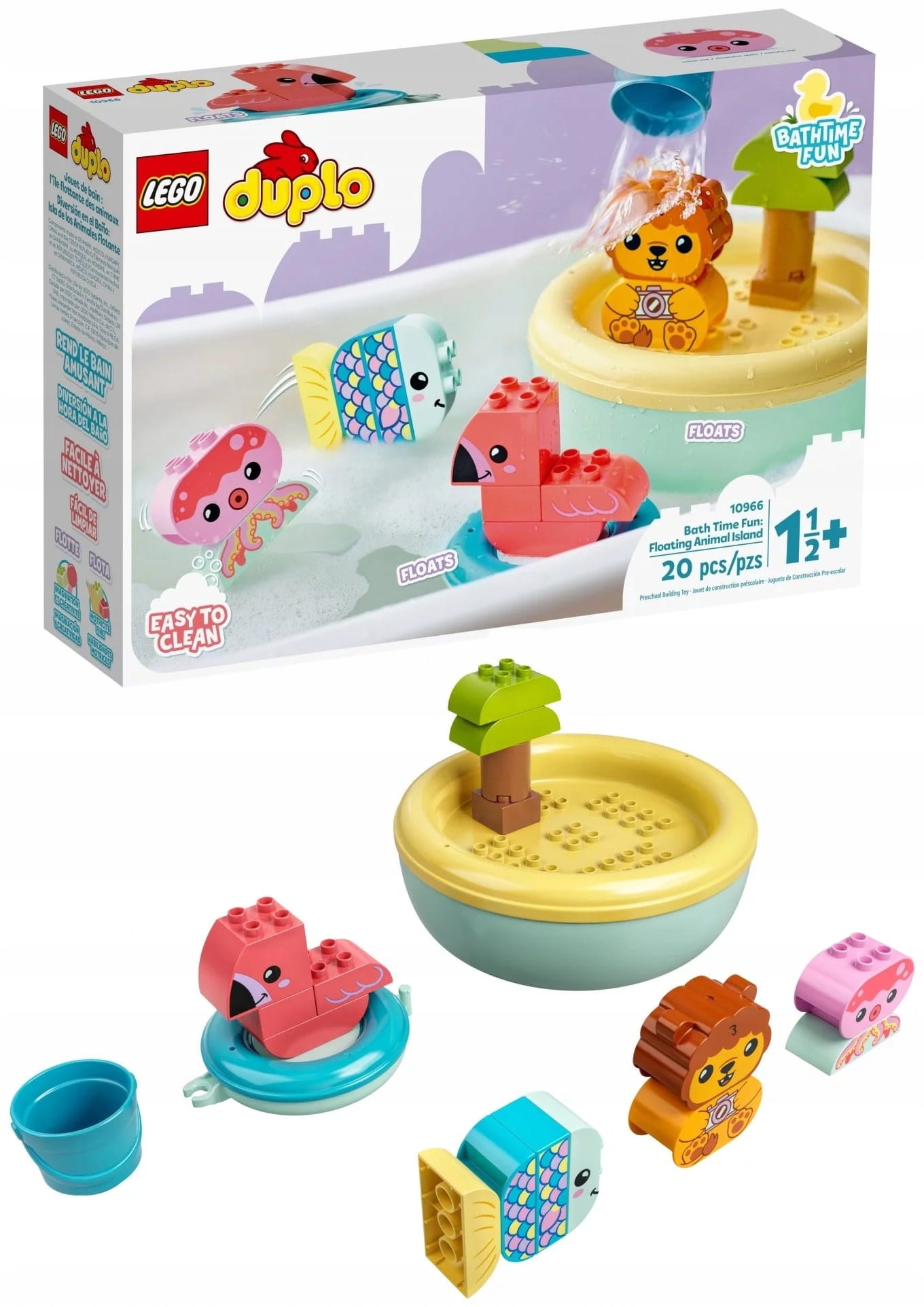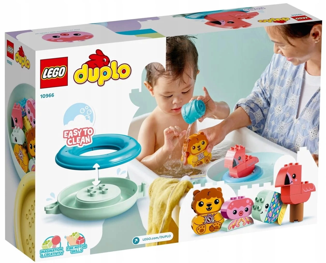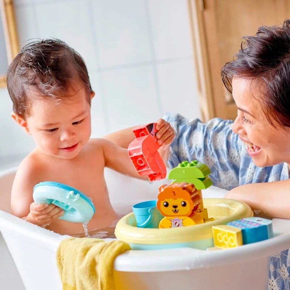 - Wszechstronna zabawka kąpielowa — LEGO® DUPLO® Moja pierwsza zabawa w kąpieli: pływająca wyspa ze zwierzątkami (10966) to wszechstronny i łatwy w czyszczeniu zestaw z wyspą, która służy również jako pojemnik do przechowywania