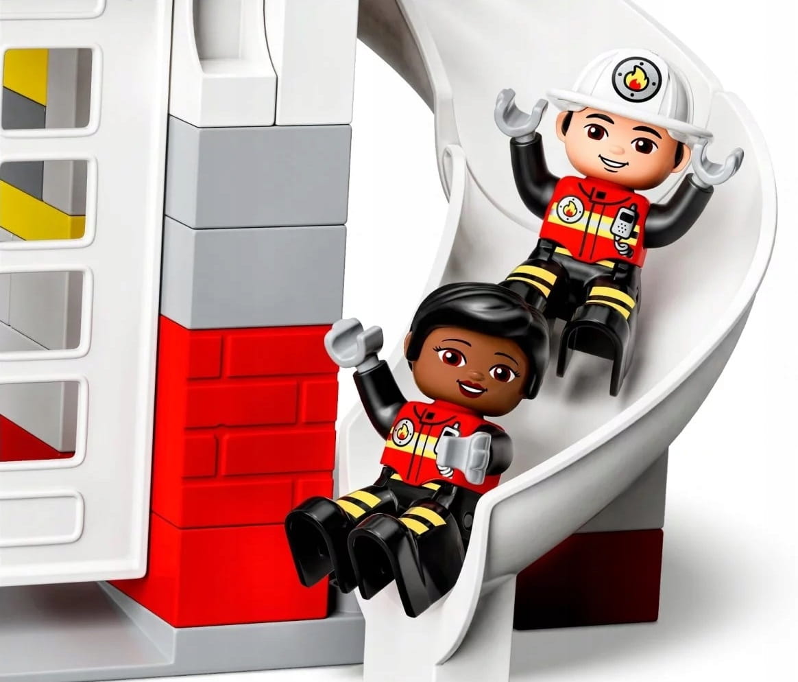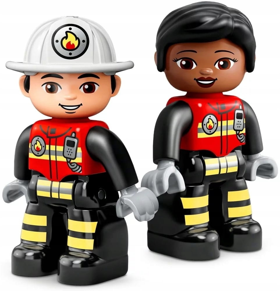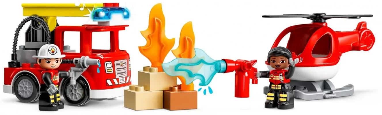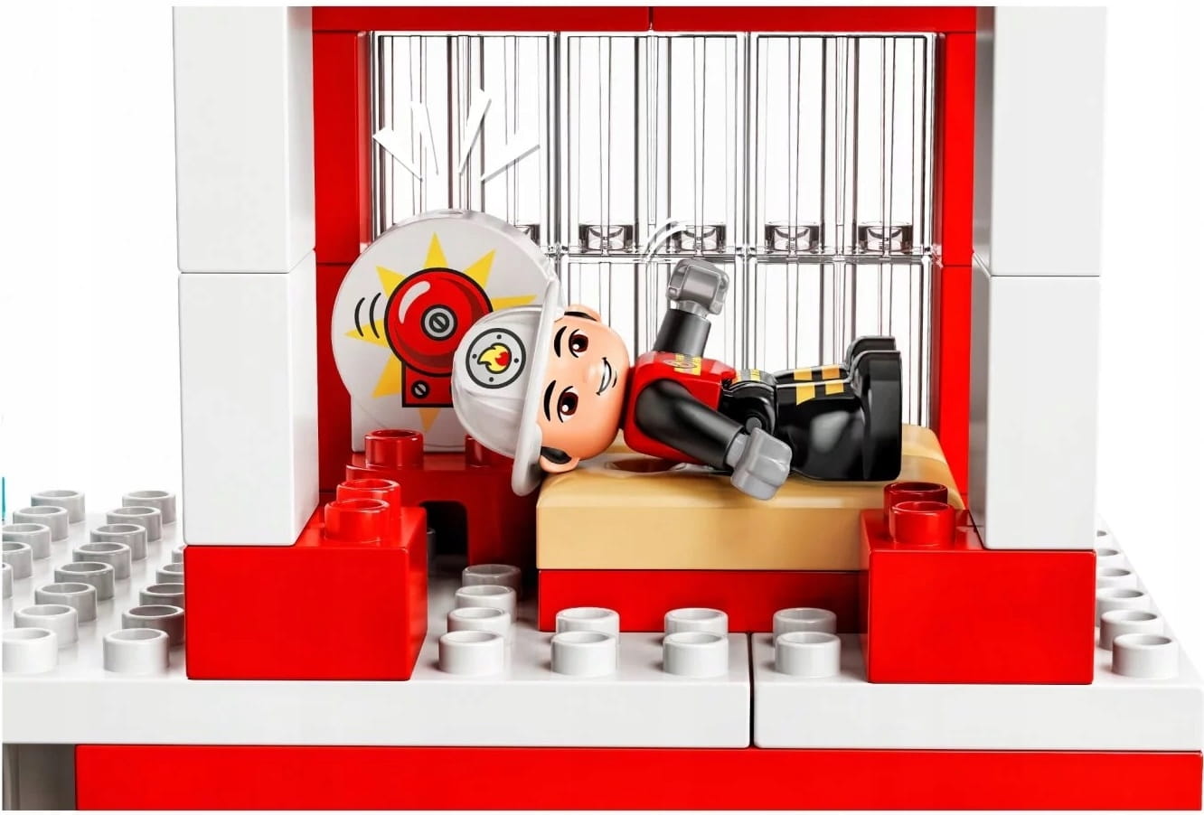 Strażacy zjeżdżają po zjeżdżalni, wskakują do wozu strażackiego z funkcją ręcznego startu i z wyciem syren oraz błyskającymi światłami przejeżdżają przez duże, obrotowe drzwi. Helikopter startuje z dachu, by też dołączyć do akcji. Po zakończonej pracy strażacy organizują szkolenie, a na koniec dnia zjadają zasłużoną pizzę i kładą się do łóżek — jutro czeka ich kolejny pracowity dzień. Zestaw przygotowany został specjalnie dla przedszkolaków i aż pęka w szwach od możliwości zabawy, która wspiera rozwój dzieci i pomaga im doskonalić koordynację wzrokowo-ruchową, świadomość emocjonalną i inne umiejętności, a także bez problemów poznać pracę strażaków.