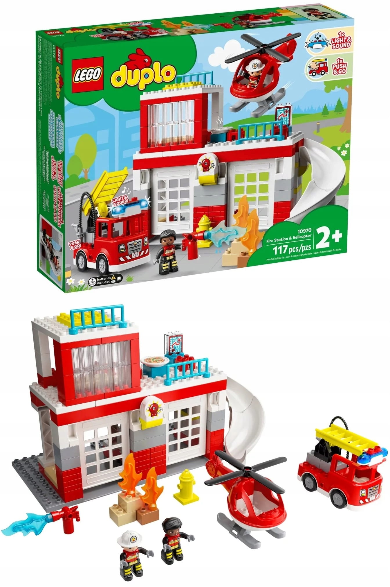 LEGO® DUPLO® Rescue Remiza strażacka i helikopter (10970) to duży zestaw wypełniony ciekawymi szczegółami i fascynującymi funkcjami, które inspirują maluchy w wieku od 2 lat do wspaniałej zabawy.