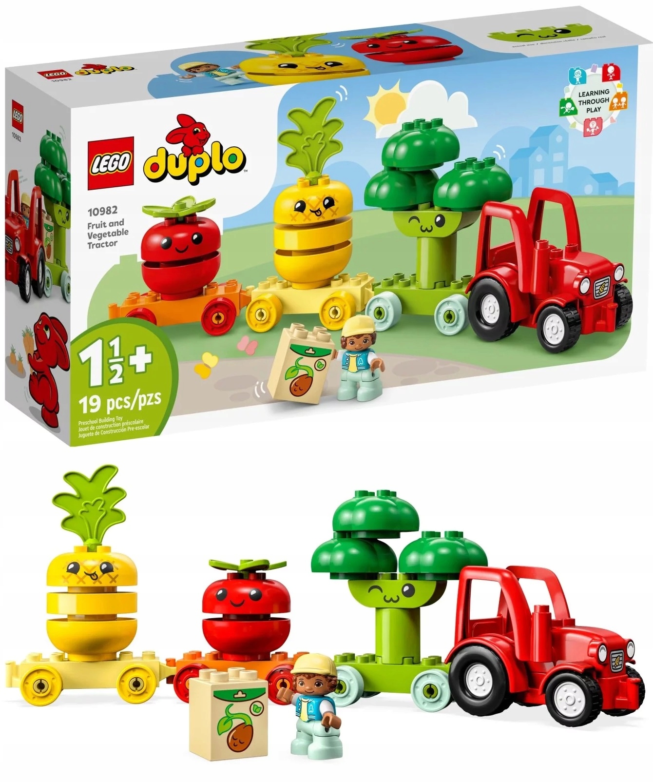 Zestaw LEGO® DUPLO® Pierwsze klocki Traktor z warzywami i owocami (10982) oferuje mnóstwo ciekawych sposobów na rozwijanie wiedzy maluchów.
