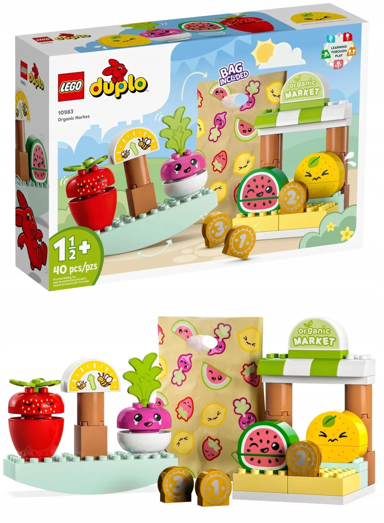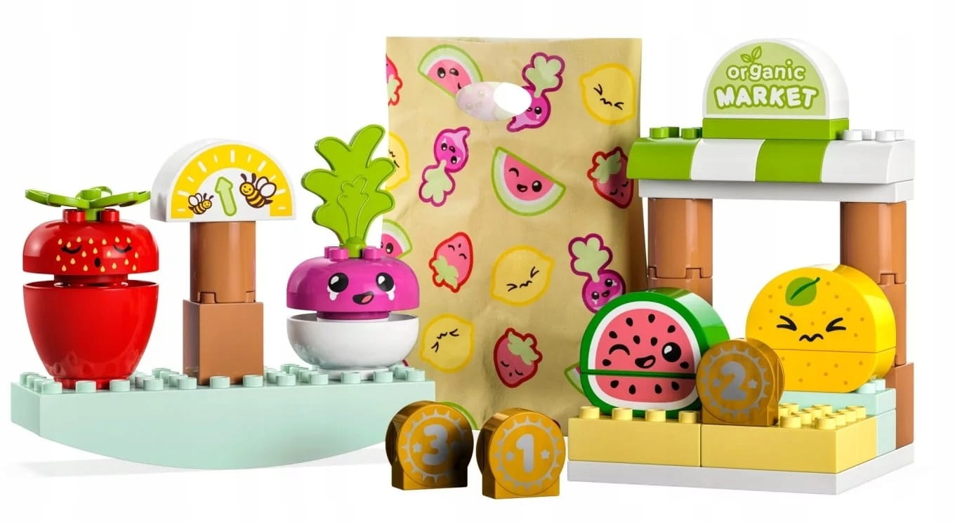 Wprowadź maluchy w świat zakupów dzięki zestawowi LEGO® DUPLO® Pierwsze klocki Ryneczek bio (10983).