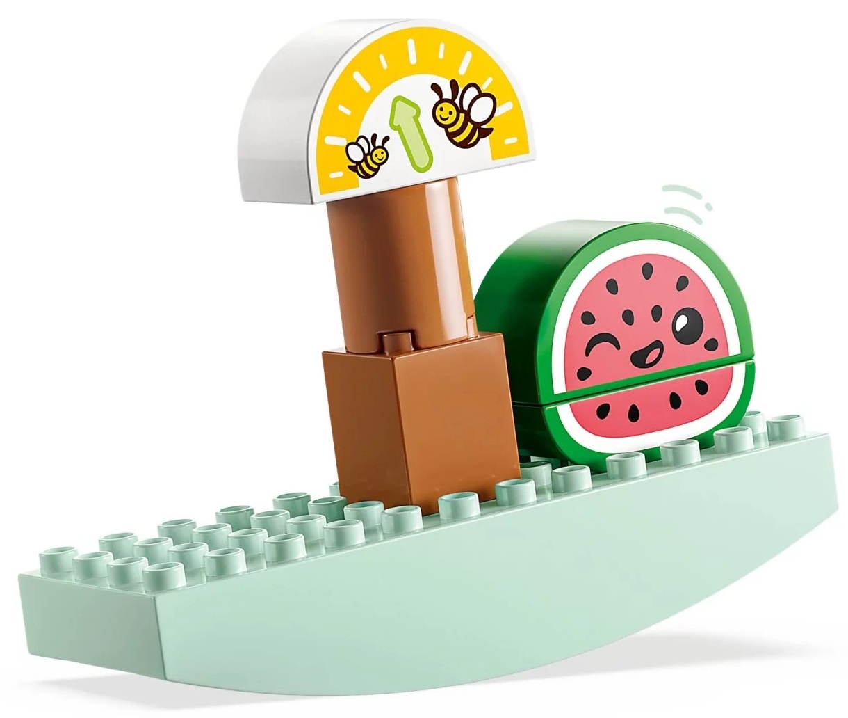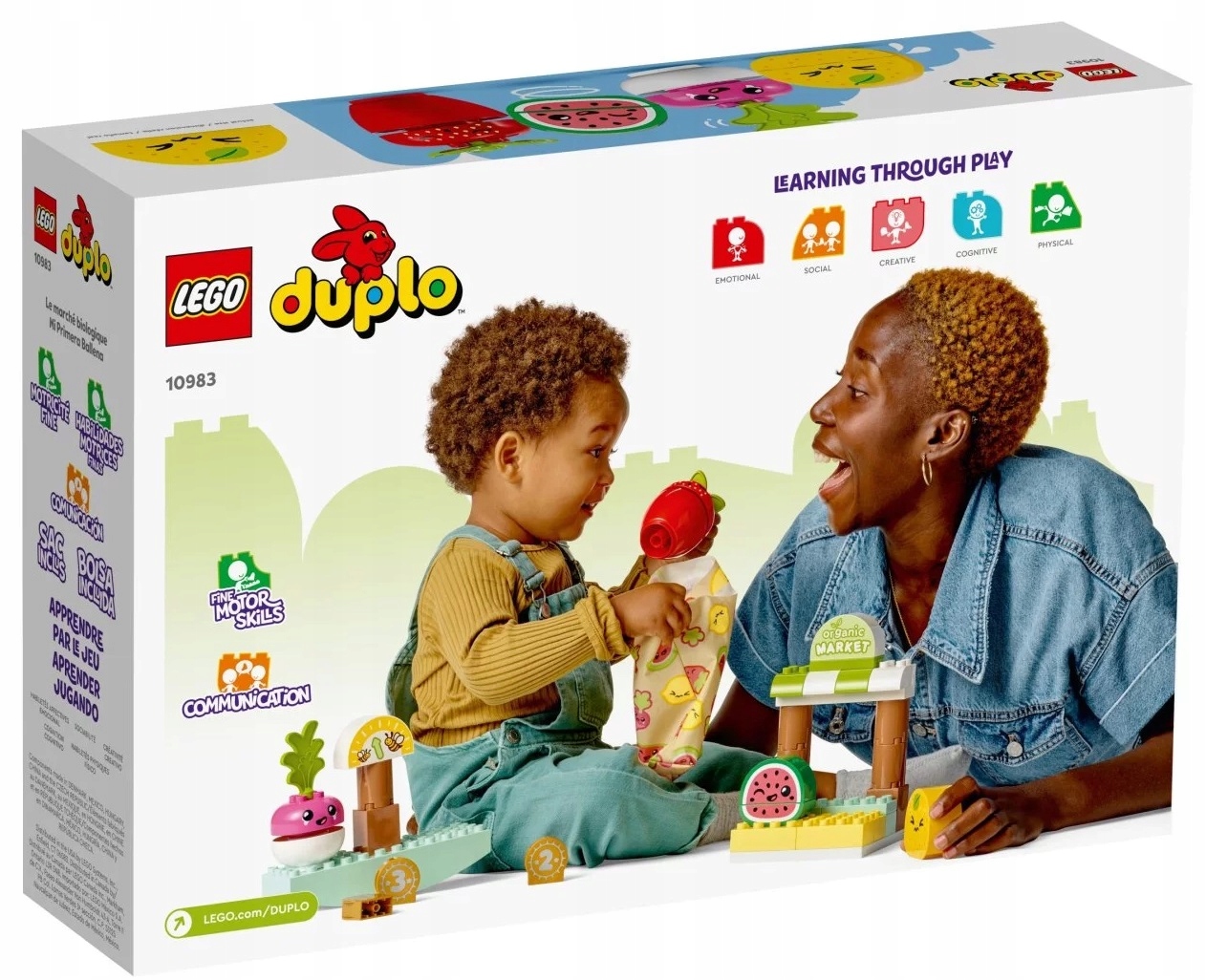 - Zabawka z ryneczkiem – przedstaw małym konstruktorom w wieku od 18 miesięcy zabawę w zakupy dzięki zestawowi LEGO® DUPLO® Pierwsze klocki Ryneczek bio (10983)