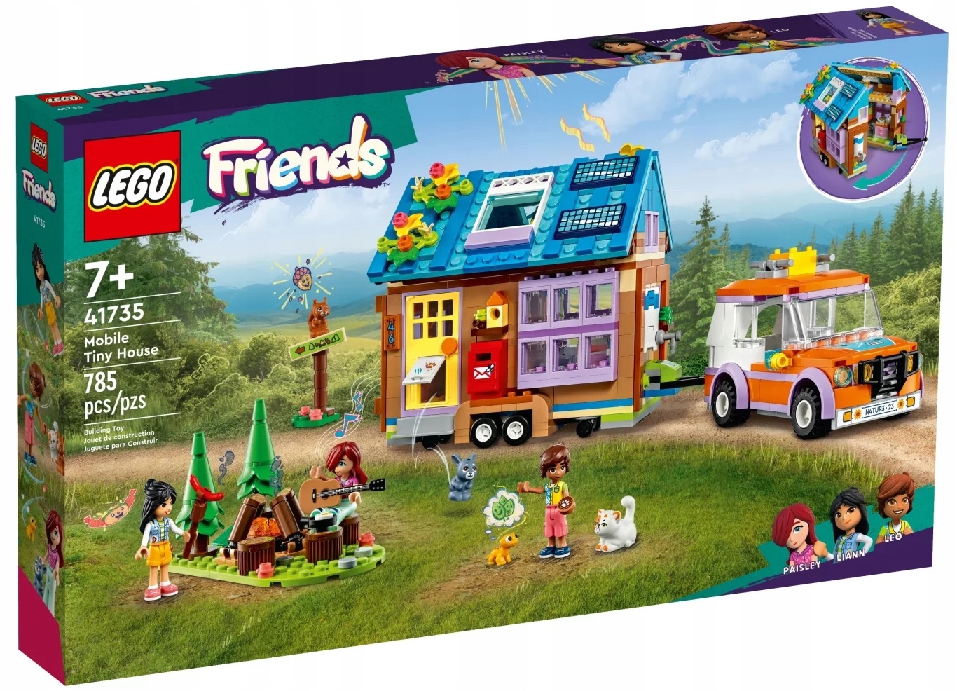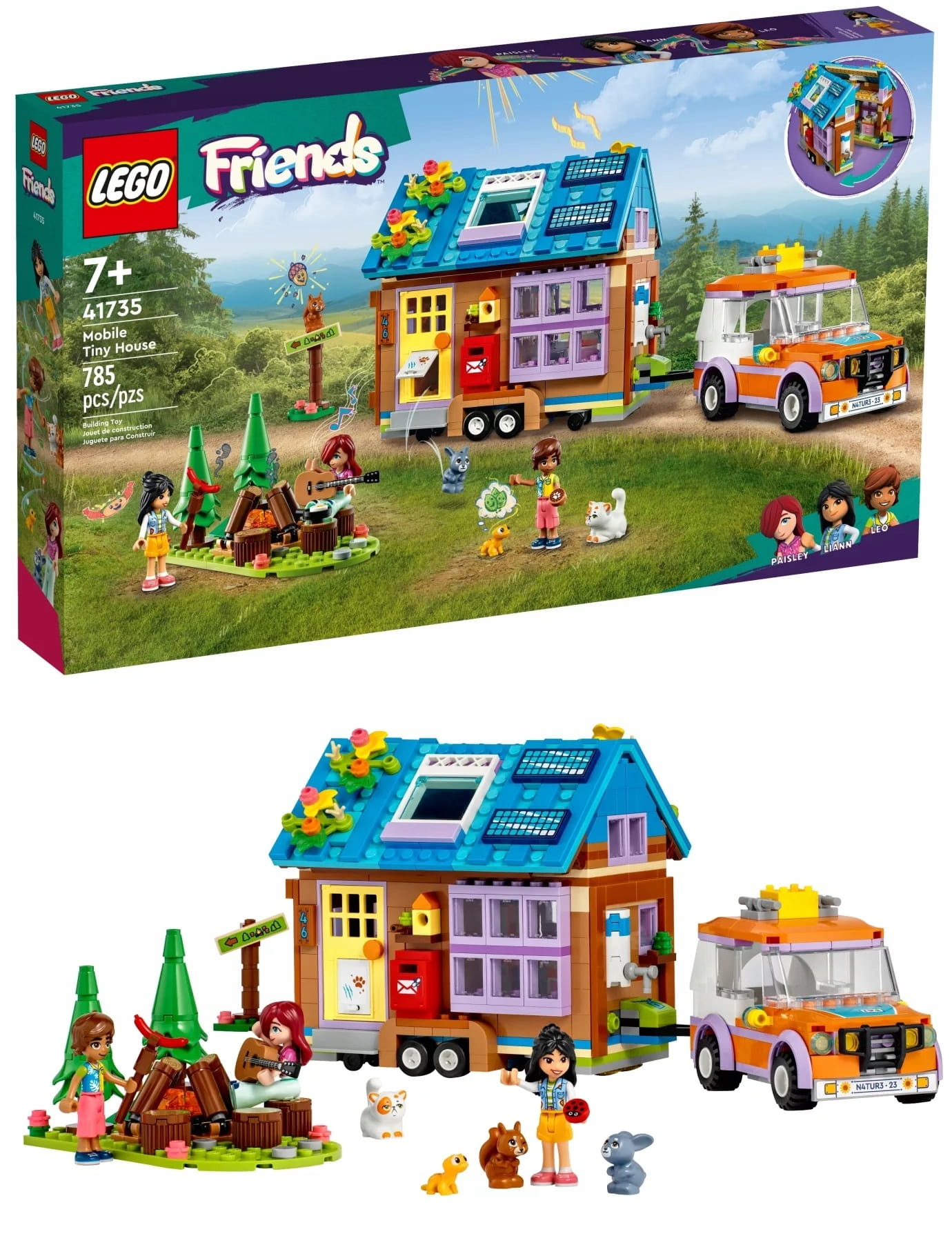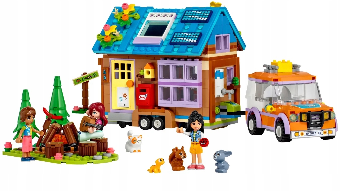 - Dom pełen przygód – wprowadź dzieci w wieku od siedmiu lat w świat budowania i kreatywnej zabawy dzięki temu ciekawemu zestawowi LEGO® Friends Mobilny domek (41735), który zawiera samochód, dom i ognisko