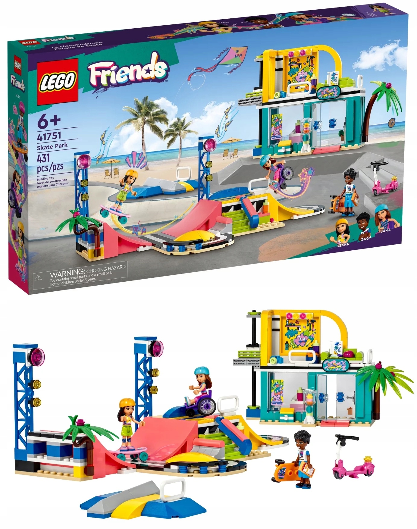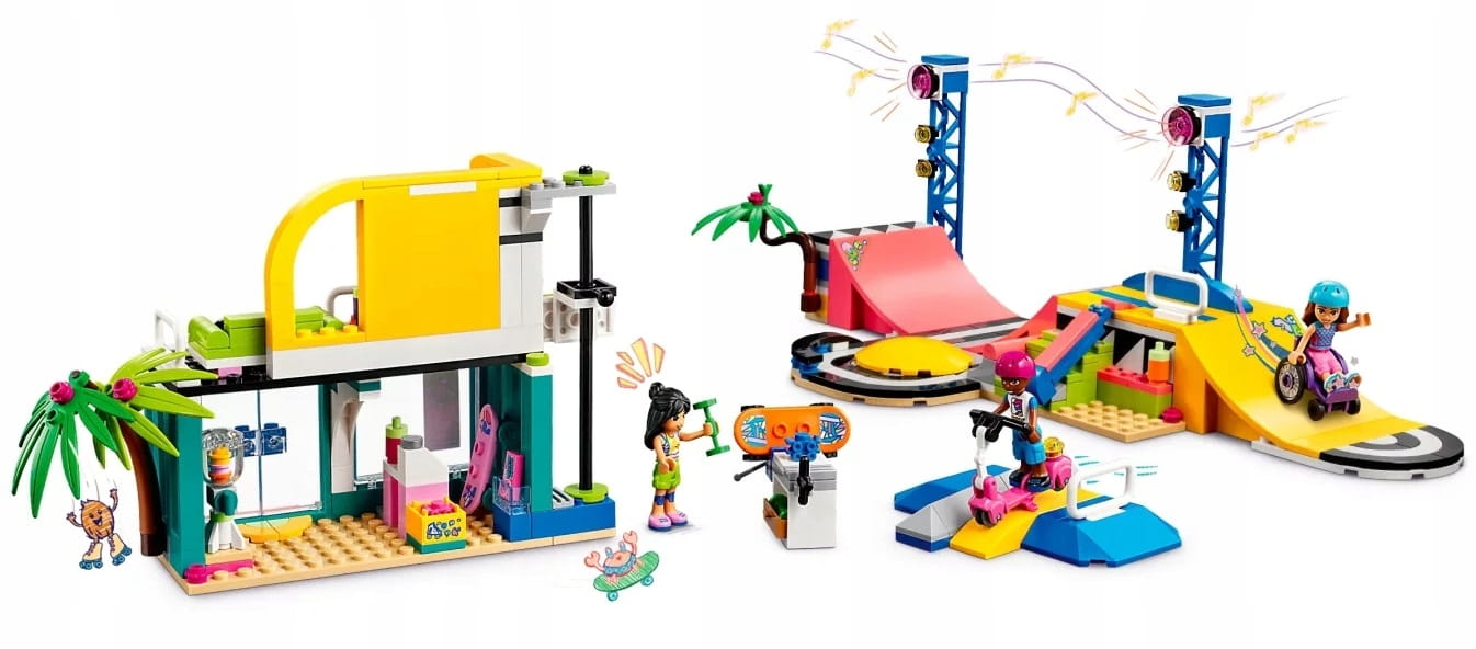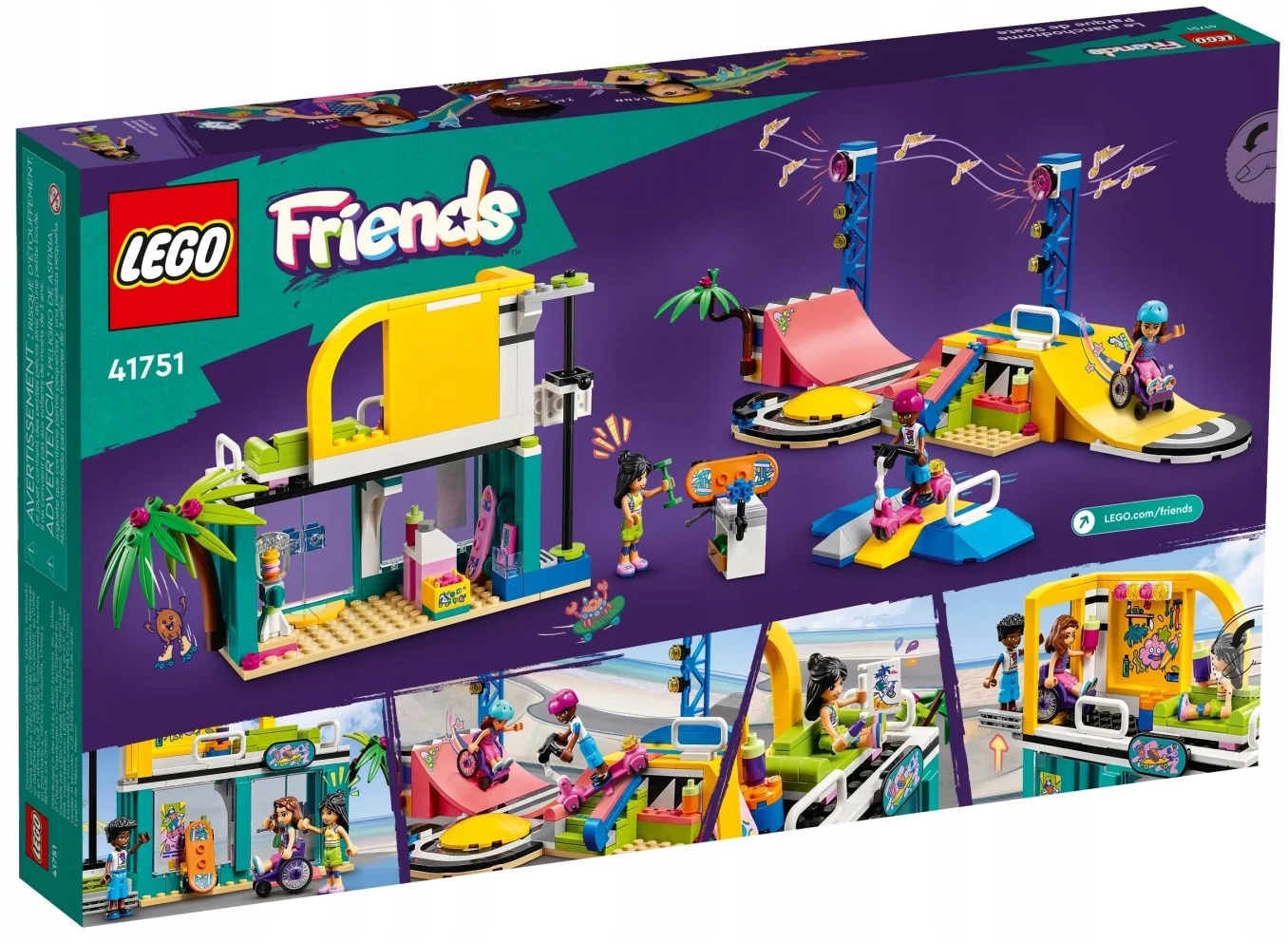 - Zabawkowy skatepark dla dzieci w wieku od sześciu lat – podaruj dzieciom, które kochają skateparki i zabawę na świeżym powietrzu, zabawny zestaw LEGO® Friends Skatepark (41751)