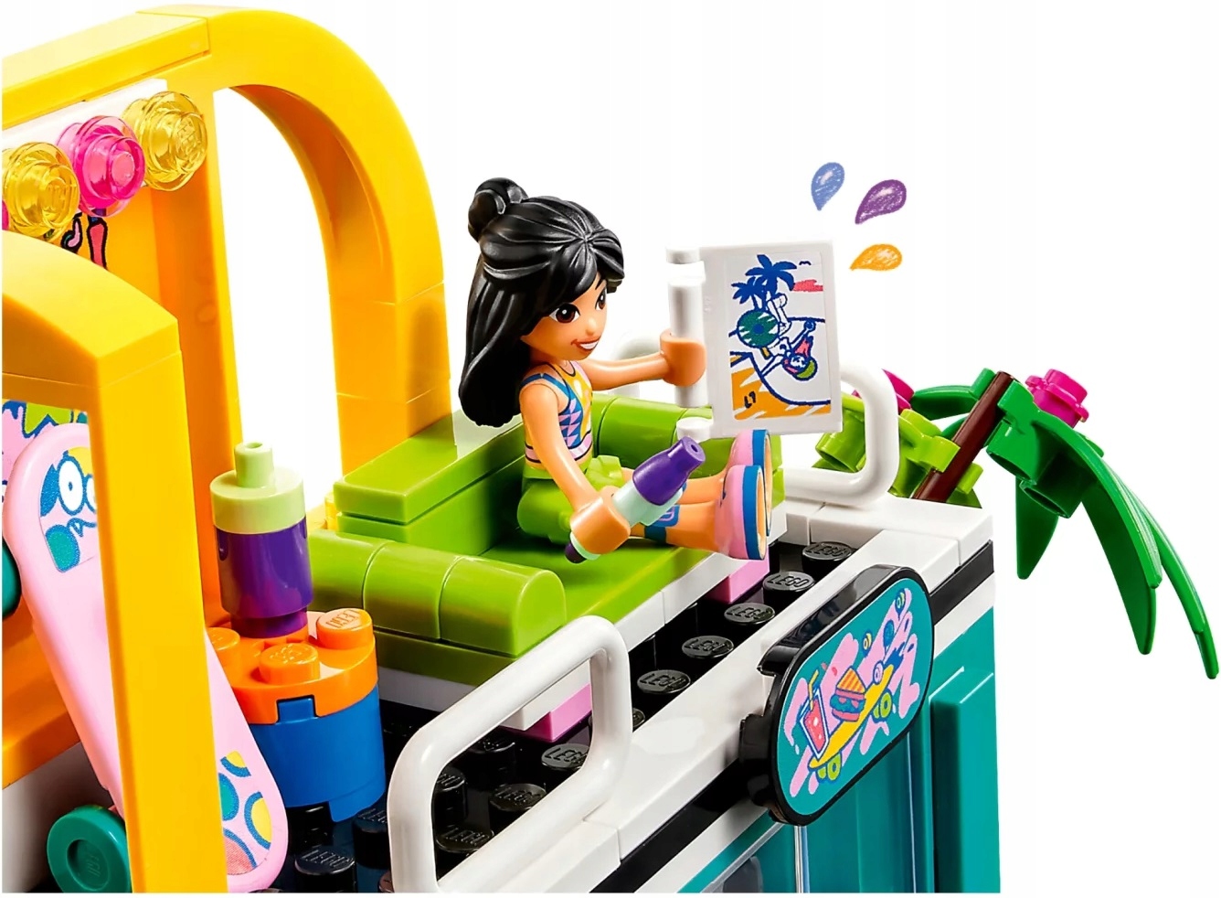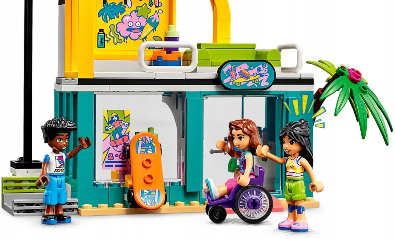 - Trzy minilaleczki i akcesoria – zestaw zawiera postacie LEGO® Friends Liann, Zaca i Lunę, rampy, poręcze, rolki, deskorolkę, skuter, wózek inwalidzki Luny i kaski dla wszystkich postaci