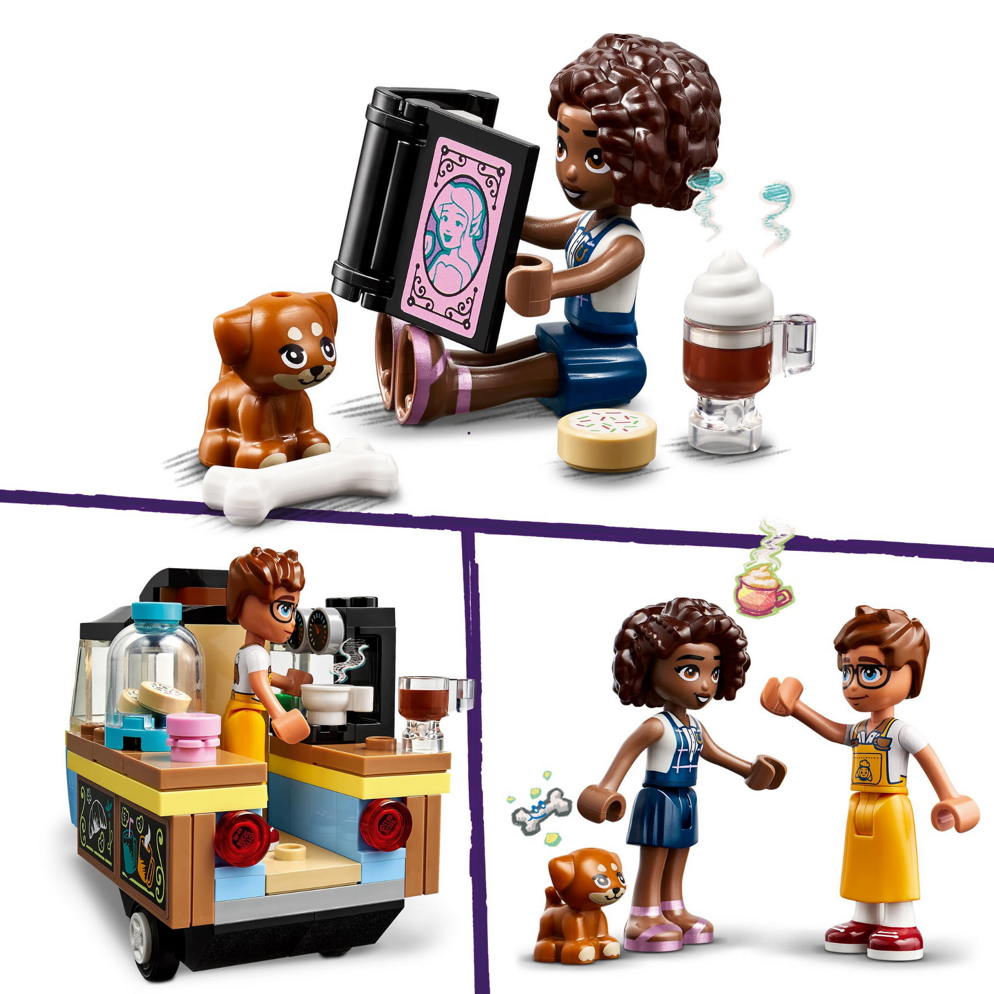 - Zestaw LEGO® Friends Mobilna piekarnia — zawiera dwie minilaleczki, figurkę psa, wózek i mnóstwo zabawkowych akcesoriów do piekarni dla dzieci w wieku od sześciu lat