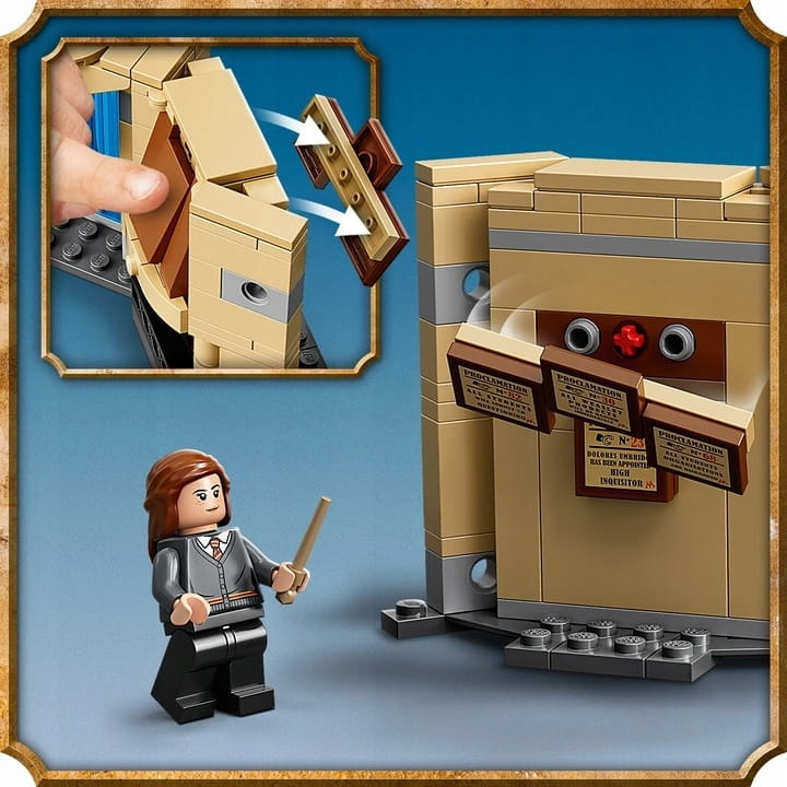 - Przesuwany panel odsłania wejście do tajnego pomieszczenia, gdzie Harry Potter ćwiczy z przyjaciółmi obronę przed czarną magią. Mogą przywoływać patronusy, strzelać z miotaczy i wymyślać najróżniejsze zabawy z wykorzystaniem fajnych funkcji.