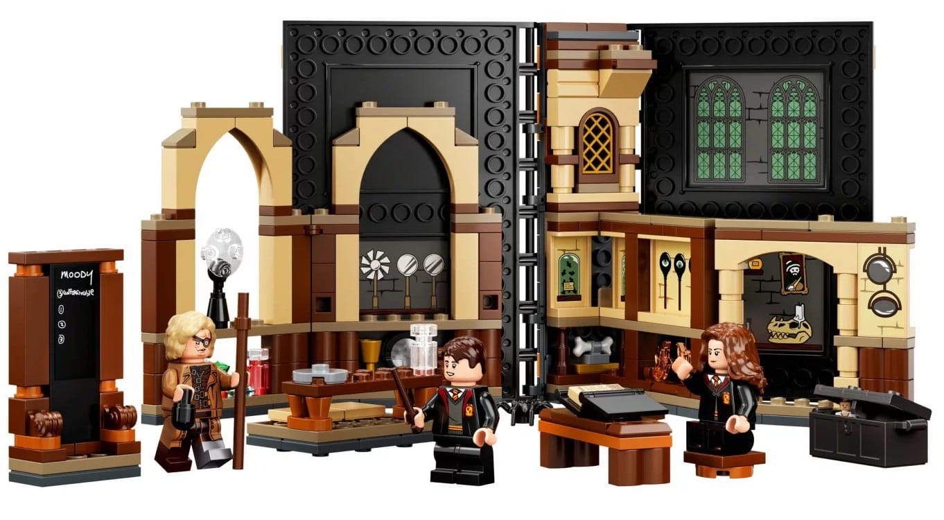 - Sala z Hogwartu™ — w środku minifigurki Szalonookiego Moody’ego, Hermiony Granger™ i Neville’a Longbottoma™ oraz sporo realistycznych akcesoriów, w tym tablica, skrzynia, butelki z eliksirami, ławki i krzesła