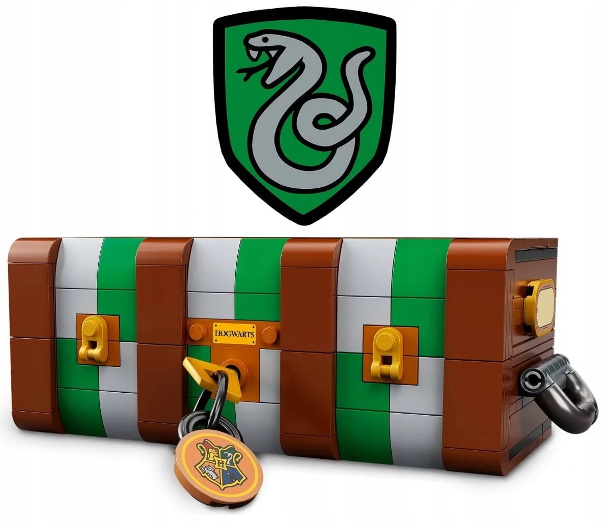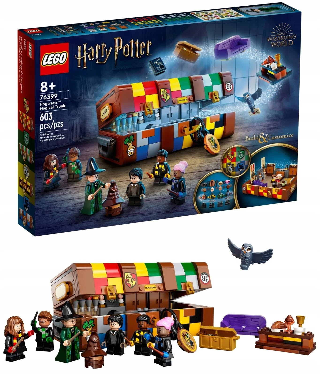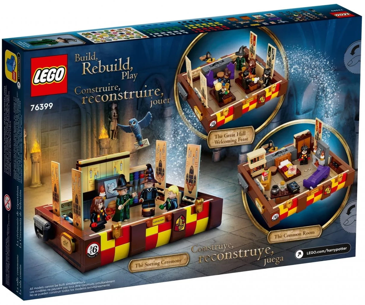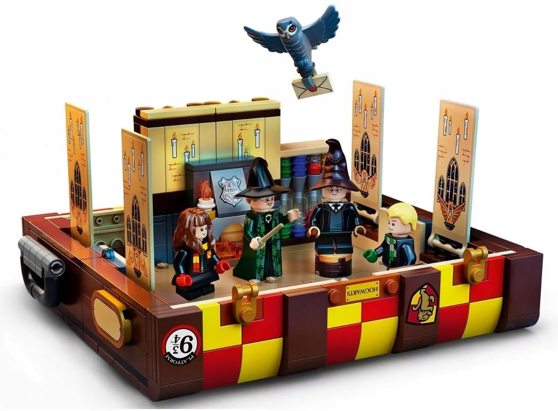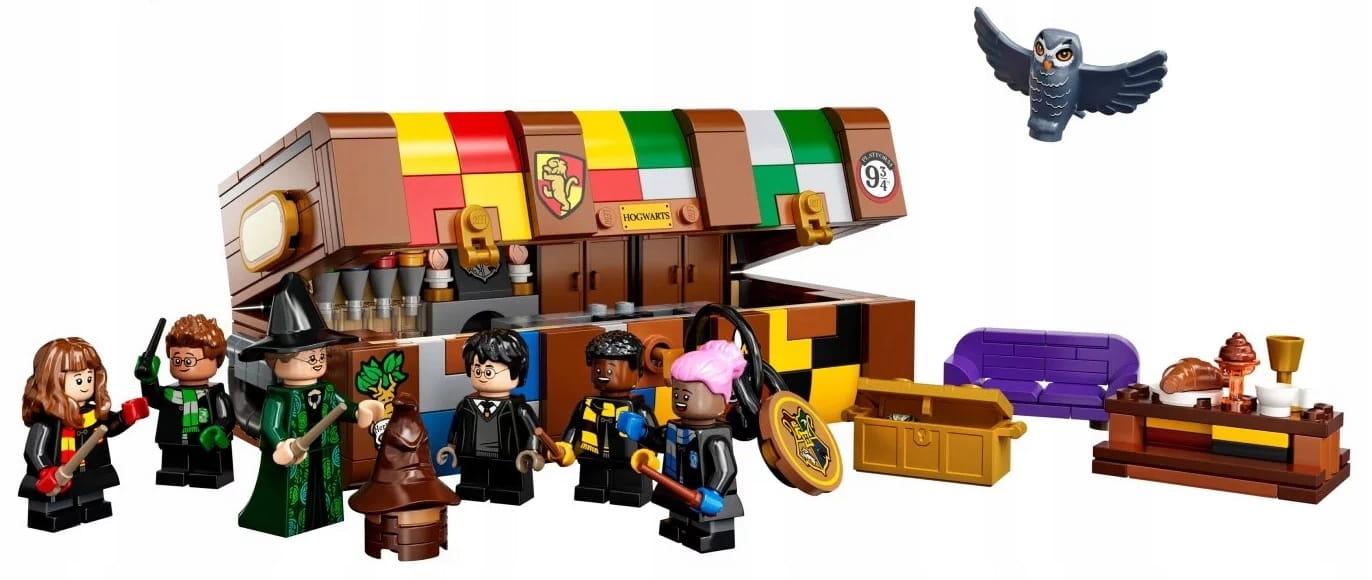 Dzieci mogą ozdobić swoje kufry z klocków LEGO kolorami wybranego domu z Hogwartu i wesołymi naklejkami, dzięki czemu każdy model wygląda jak prawdziwy kufer ucznia magicznej szkoły. W środku modelu jest dużo różnych części do budowania minifigurek, w tym różne włosy i kolory skóry, więc dzieci mogą zbudować nawet pięć postaci z filmów o Harrym Potterze i zaprojektować własnych uczniów magii. Do tego szeroka gama mebli i akcesoriów z filmów podsuwa pomysły i inspiruje do zabawy w twórcze przygody w Hogwarcie.