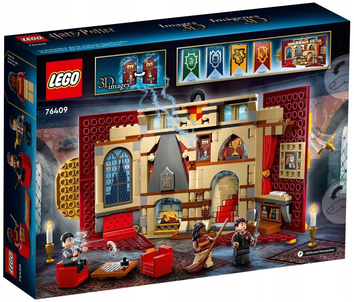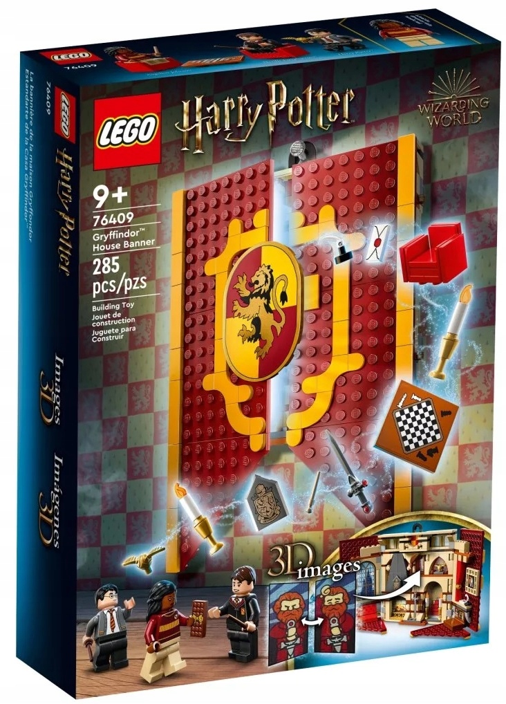 - LEGO® Harry Potter™ Flaga Gryffindoru™ (76409) – ta flaga do zbudowania pozwoli dzieciom pokazać ich lojalność wobec Gryffindoru. Zawieś ją lub otwórz, by bawić się w szczegółowym pokoju wspólnym