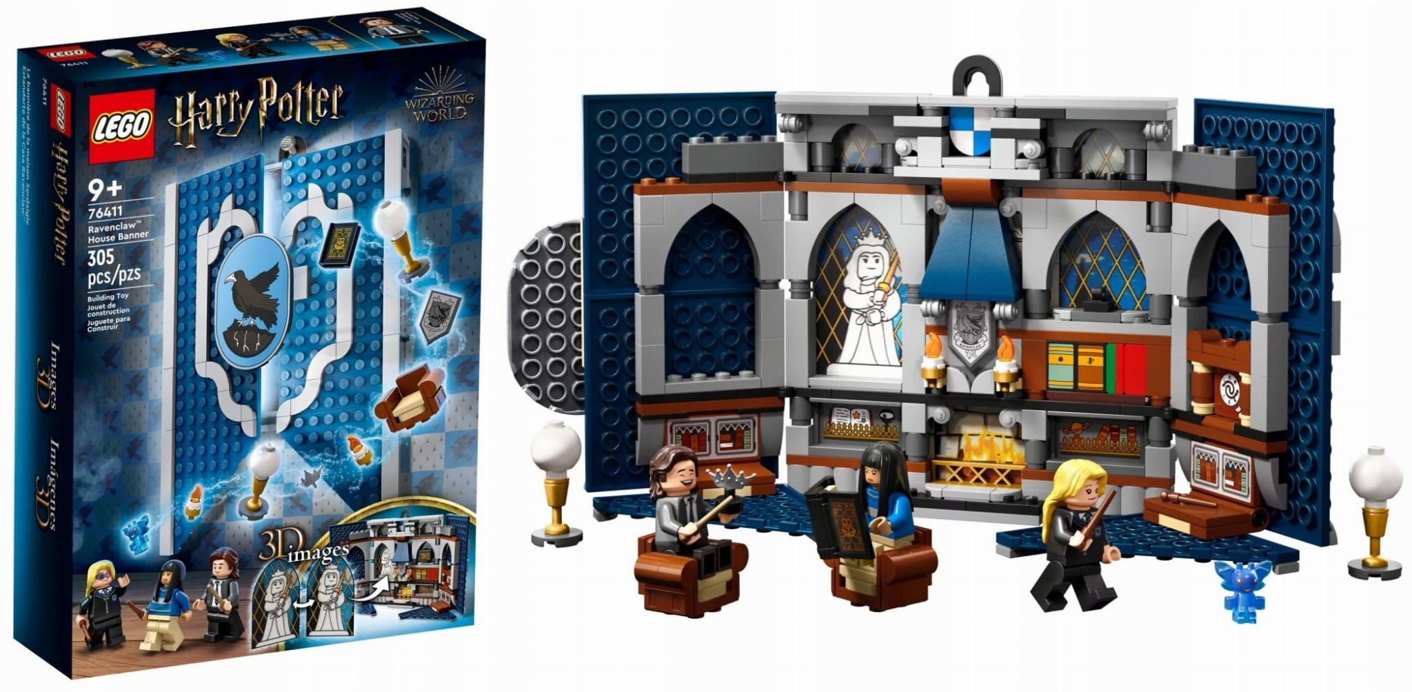 - LEGO® Harry Potter™ Flaga Ravenclawu™ (76411) – ta flaga do zbudowania pozwoli dzieciom pokazać swoją wierność wobec Rawenclawu. Zawieś ją lub otwórz, by bawić się w szczegółowym pokoju wspólnym