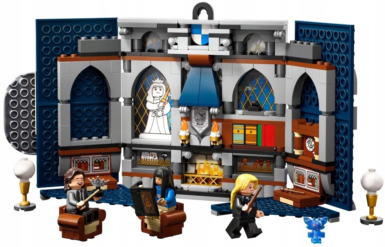 Zestaw zawiera płytkę z nadrukiem z herbem Ravenclawu i wieszak do powieszenia na ścianie. Zbudowana z klocków flaga otwiera się, ukazując szczegółowo odtworzony wielki pokój wspólny Ravenclawu ze stołem, książką, dwoma krzesłami i dwoma lampami oraz diademem Roweny Ravenclaw. Wsuwana soczewkowa tablica tworzy magiczne efekty 3D, takie jak iluzja głębi widoku przez okna i migoczące płomienie w kominku.