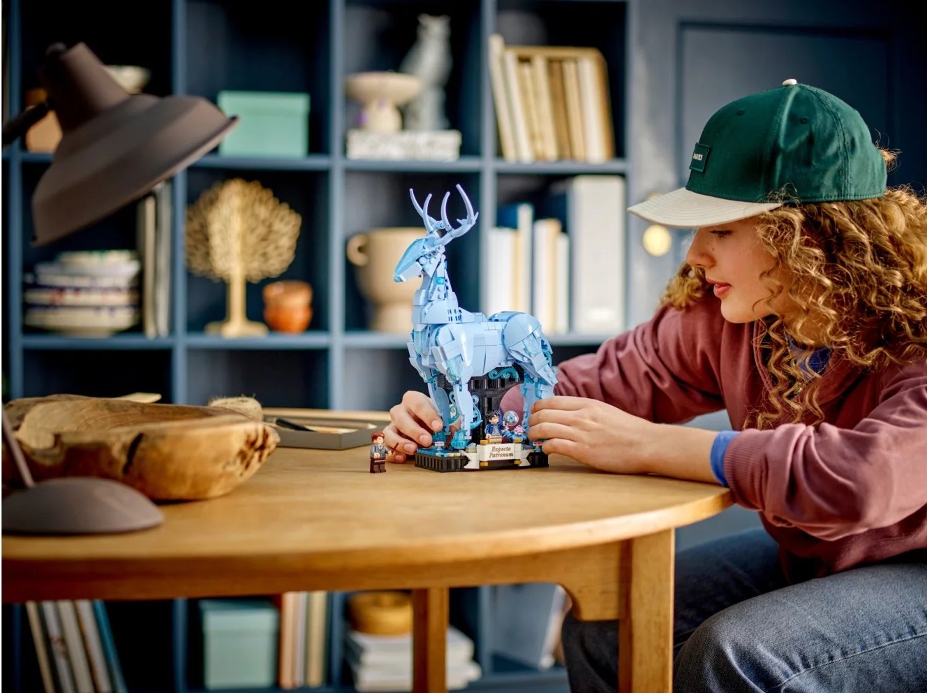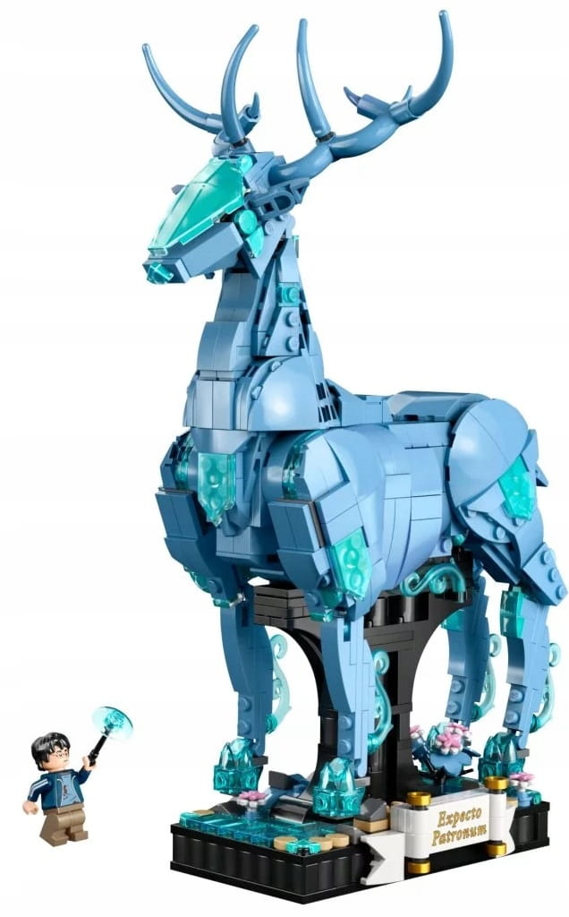 - Patronus jelenia — ma ruchome nogi, przezroczyste, jasnoniebieskie elementy nadające mistyczny wygląd oraz zintegrowaną podstawkę z elementami dekoracyjnymi i miejscem na minifigurkę Harry'ego Pottera™.