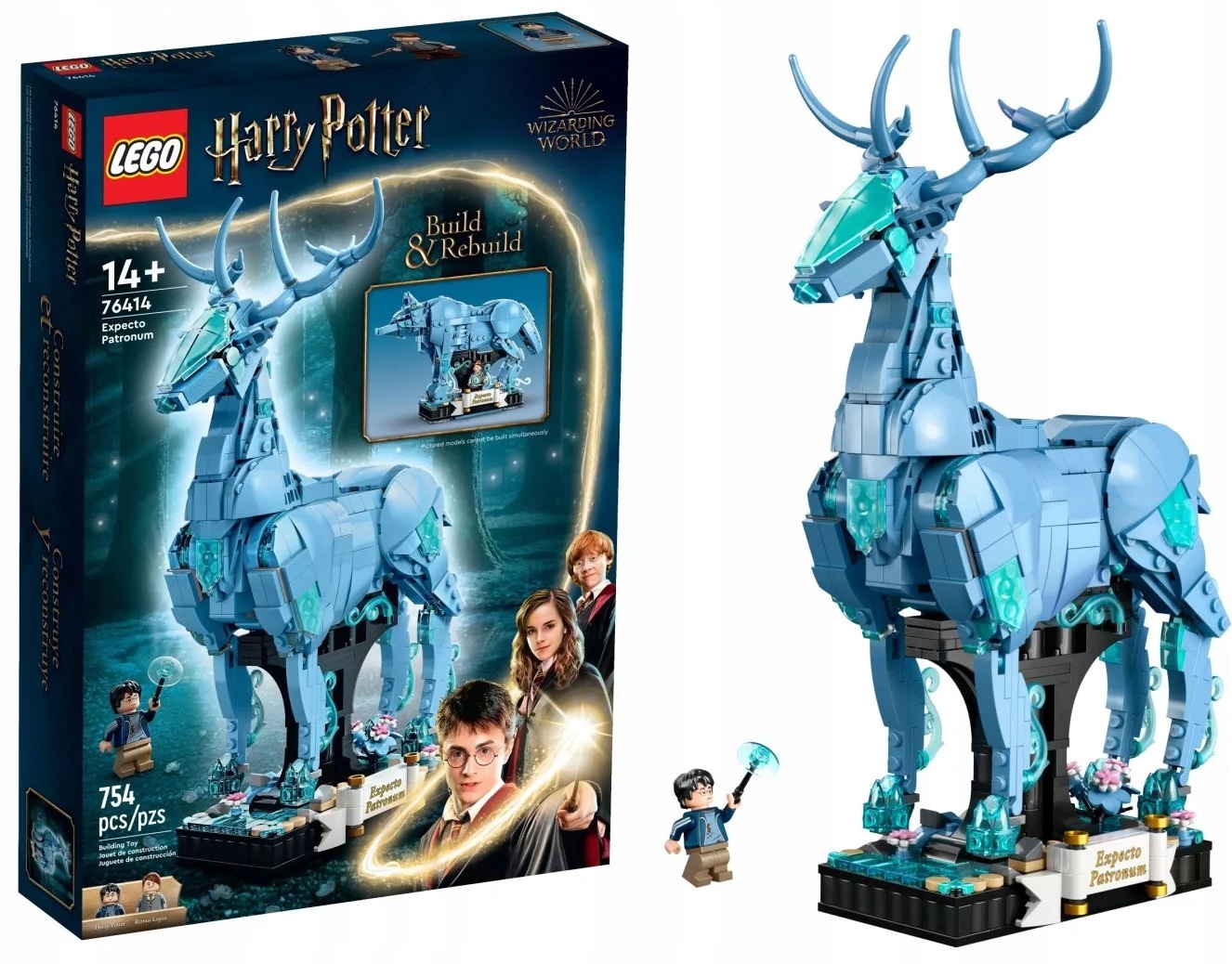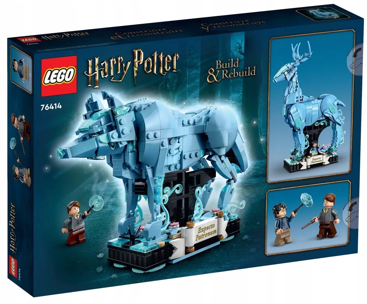 - Zestaw 2 w 1 do budowania i ozdoby LEGO® Harry Potter™ Expecto Patronum (76414) — zdecyduj, czy chcesz zbudować patronusa Harry'ego Pottera w postaci jelenia czy patronusa profesora Remusa Lupina w postaci wilka
